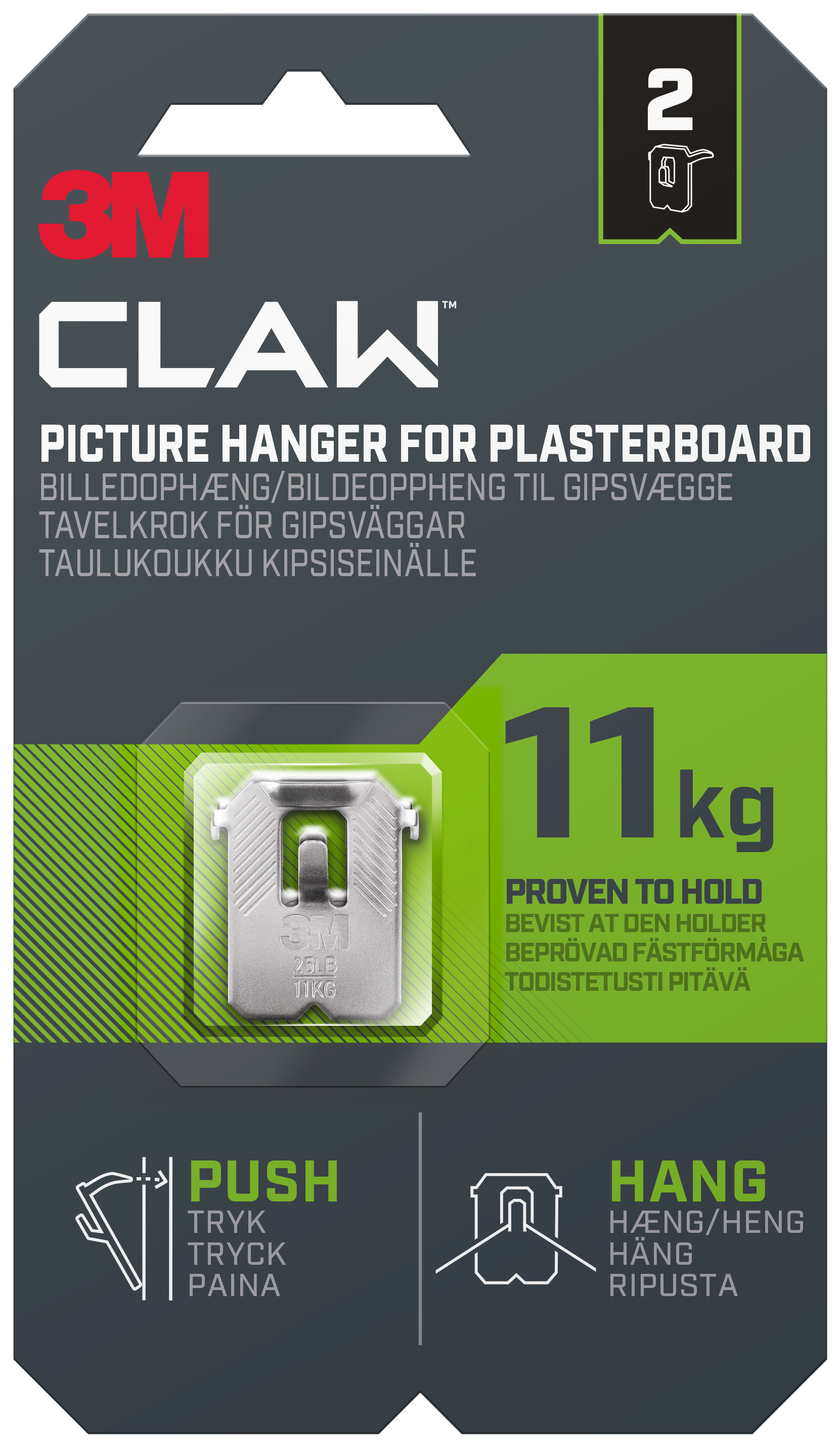 3M Claw Picture Hanger is designed to hang heavyweight items of up to 11kg, such as mirrors, frames and home decors. There's no need for any tools when it comes to hanging, simply push it in with your thumbs and hang your items.