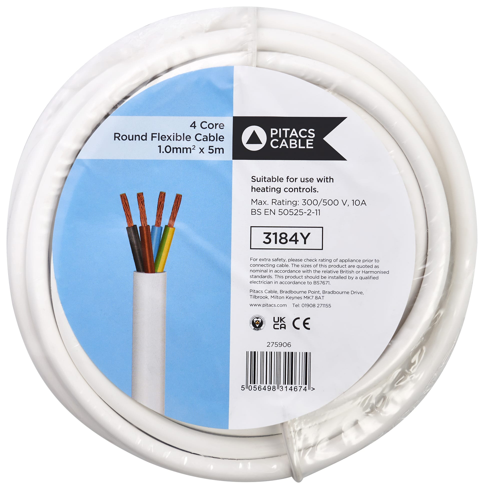4 Core 3184Y White Round Flexible Cable - 1mm2 - 5m