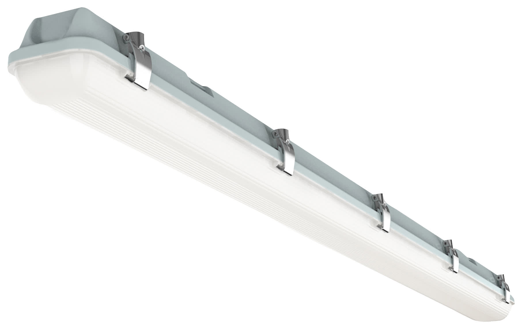 Featuring a durable polycarbonate body, this LED luminaire offers a seamless replacement for traditional fluorescent fixtures. Its innovative light fixing clip design allows for easy mounting onto BESA boxes. With superior performance surpassing T8 and T5 fluorescents, it comes equipped with lockable, heavy-duty stainless steel clips for added security.