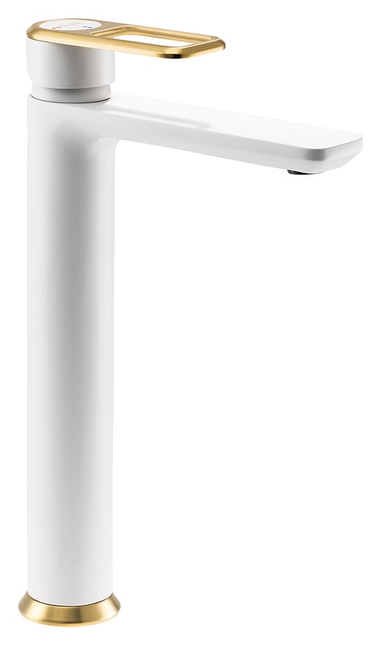 The Abode Levarto Tall Basin Mixer Tap combines an on trend white and brushed brass finish. Bringing a real wow factor to your bathroom. Designed for ease of use, the single lever control allows effortless adjustment of water flow and temperature, providing optimal comfort and convenience.
