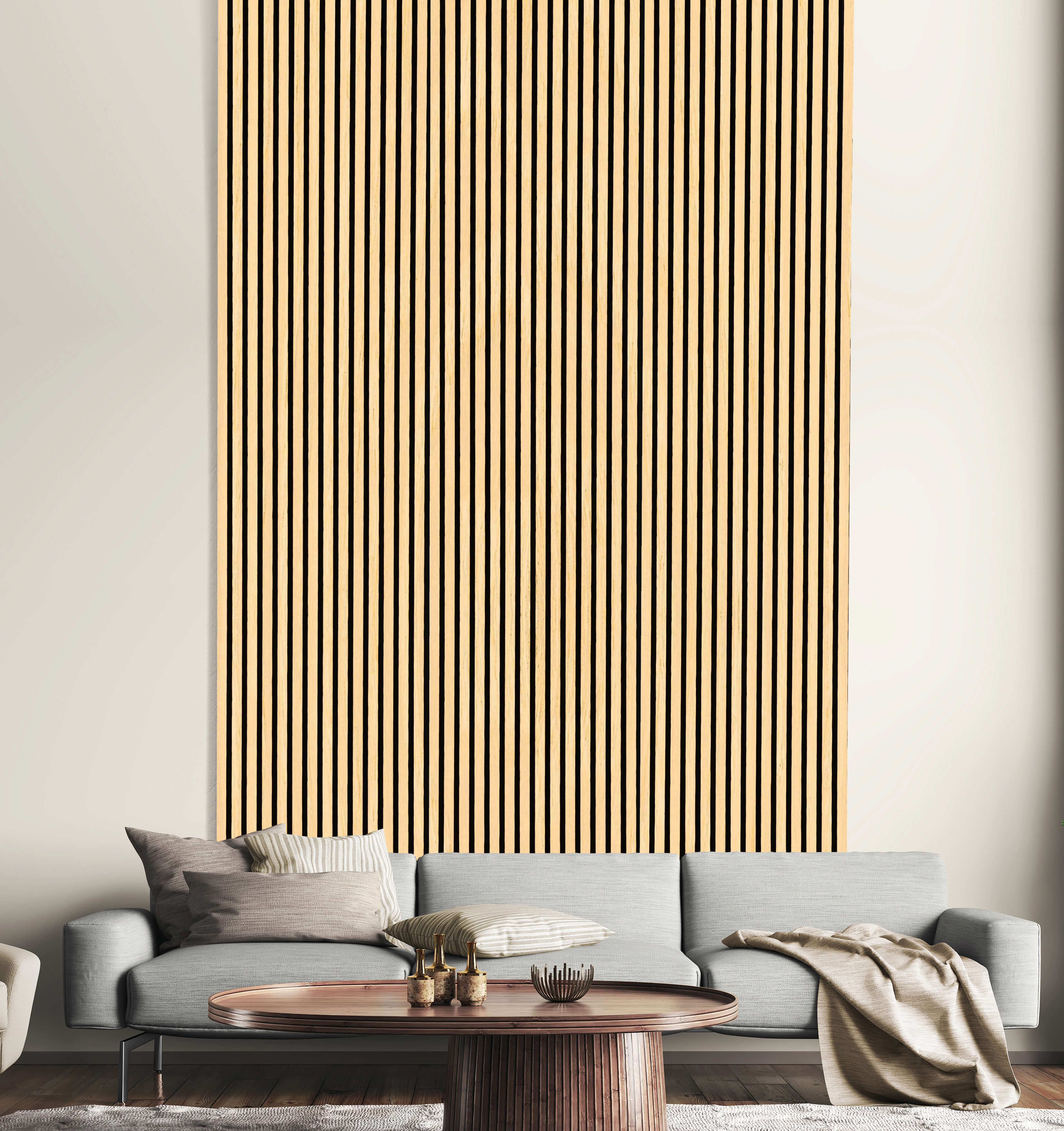 These Acoustic Slat Wall Designer Wood Panels will add a luxe and modern style to your home. These effortless installation panels also absorb background noise.