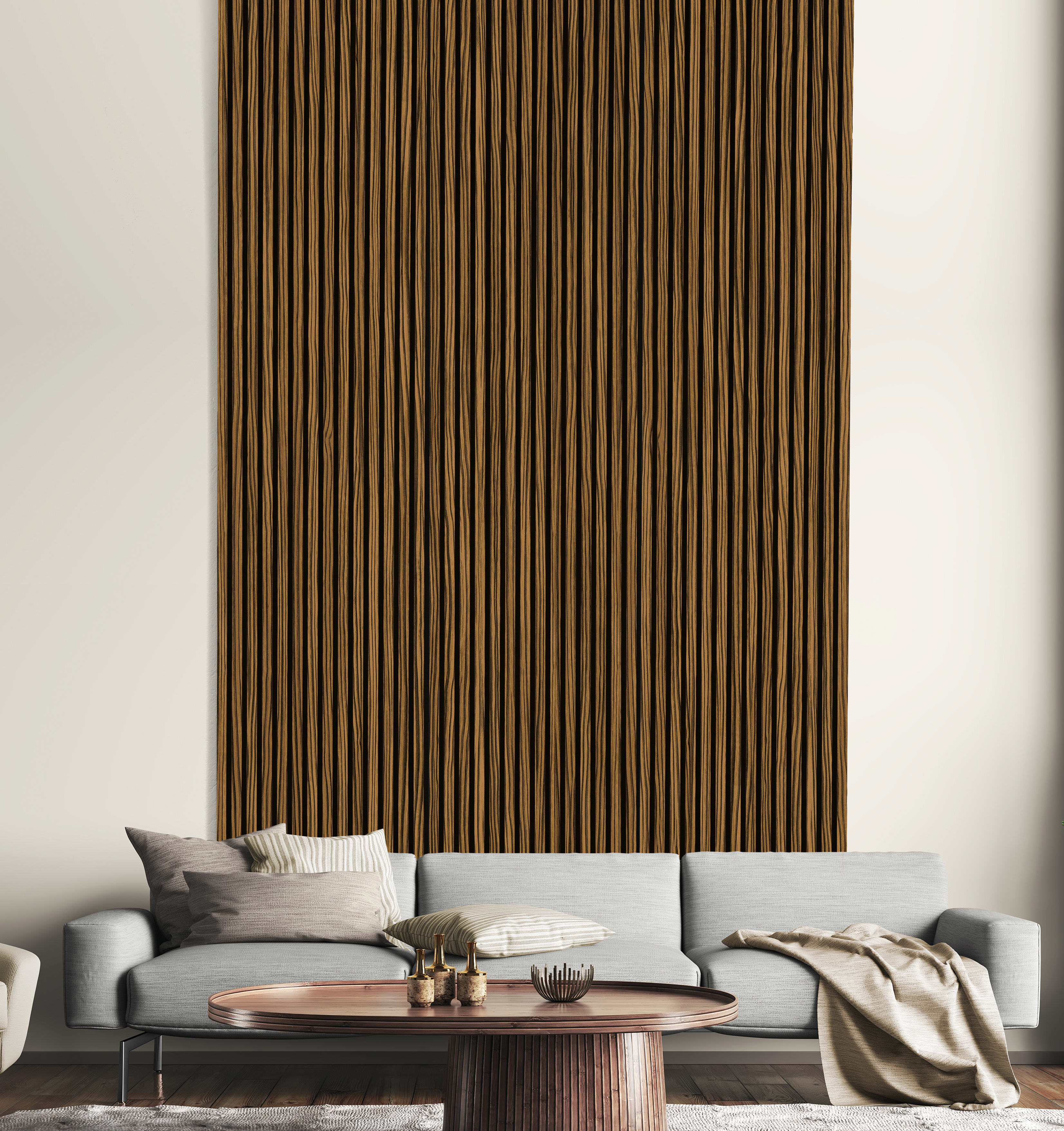 Acoustic Slat Wall Zebrano Foil Wood Panel - 19 x 573 x 1200mm