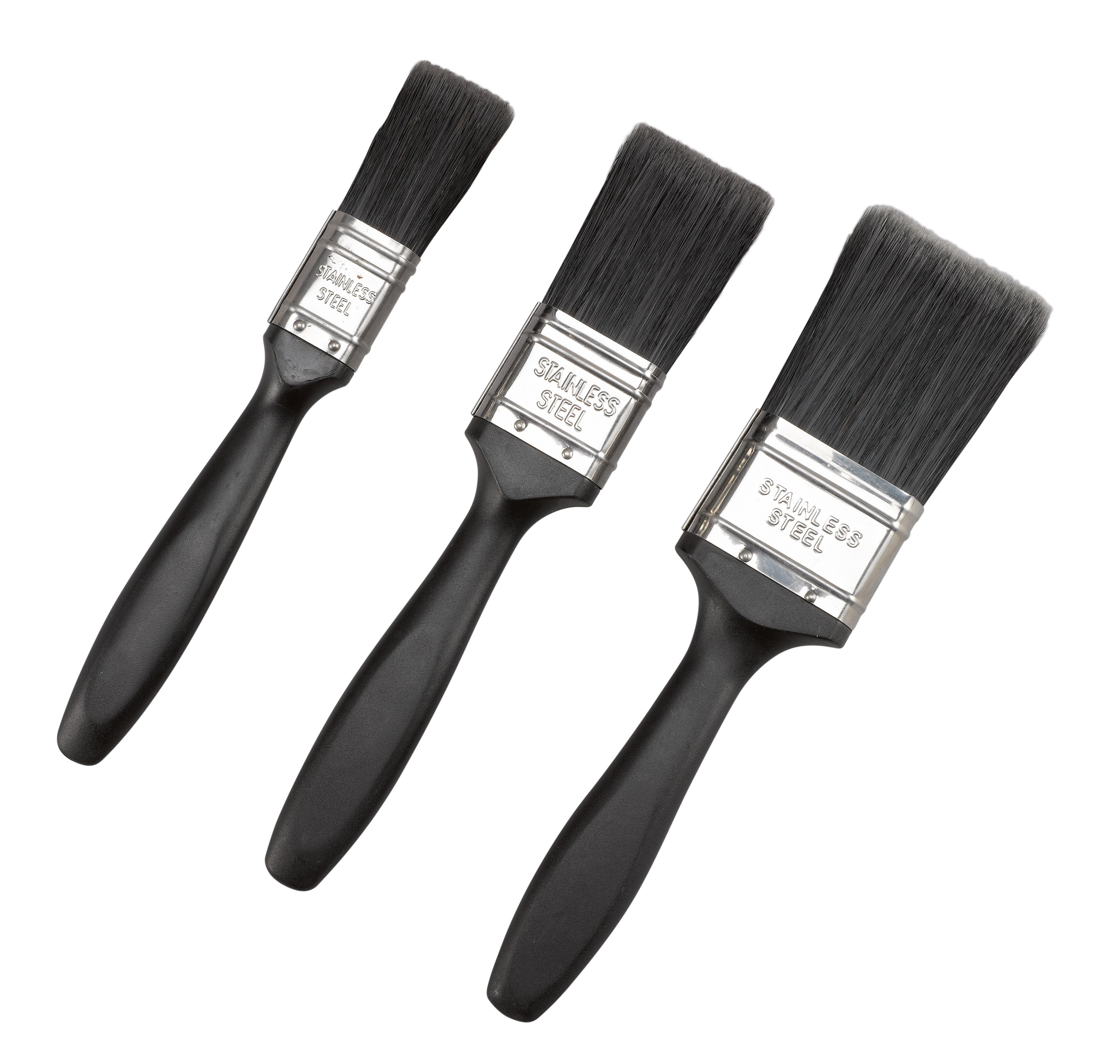 Pack of 3 all-purpose mixed natural and synthetic bristle brushes suitable for use with all paint types.