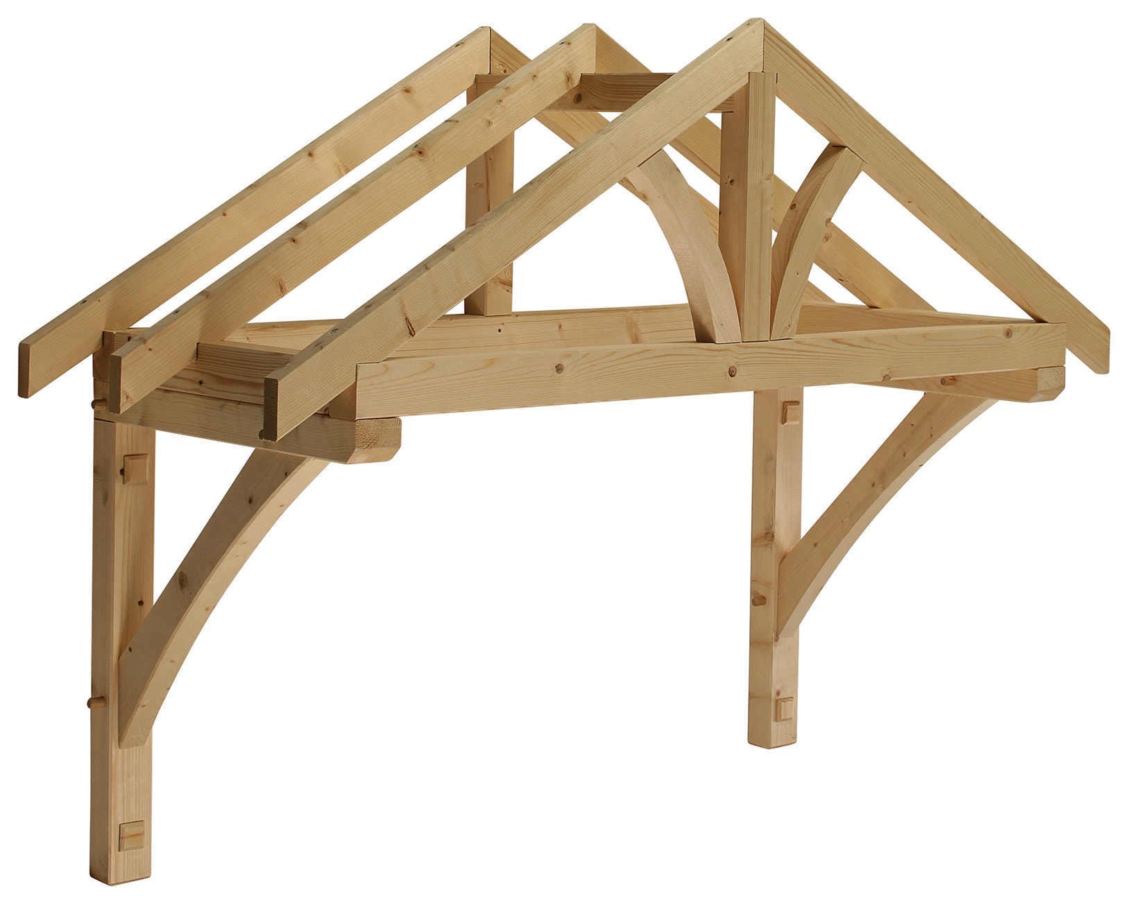 Apex Porch canopy is an elegant looking exterior canopy that is designed to fit the majority of entrances. With its precisely crafted straight grained pine finish, it provides a stylish and durable frame that can be finished by you in a way that best suits your buildings exterior. The components of this porch canopy are pre-drilled and ready to screw together at a moments notice, this makes installation much simpler and much less time consuming (Please note that roof tiles, fascias and wall fixings are not included).