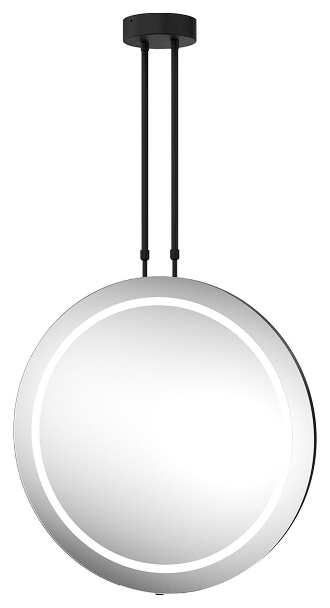 - Hang from the ceiling against a wall to benefit from a backlit halo illumination against the wall in addition to front illumination from the front facing mirror