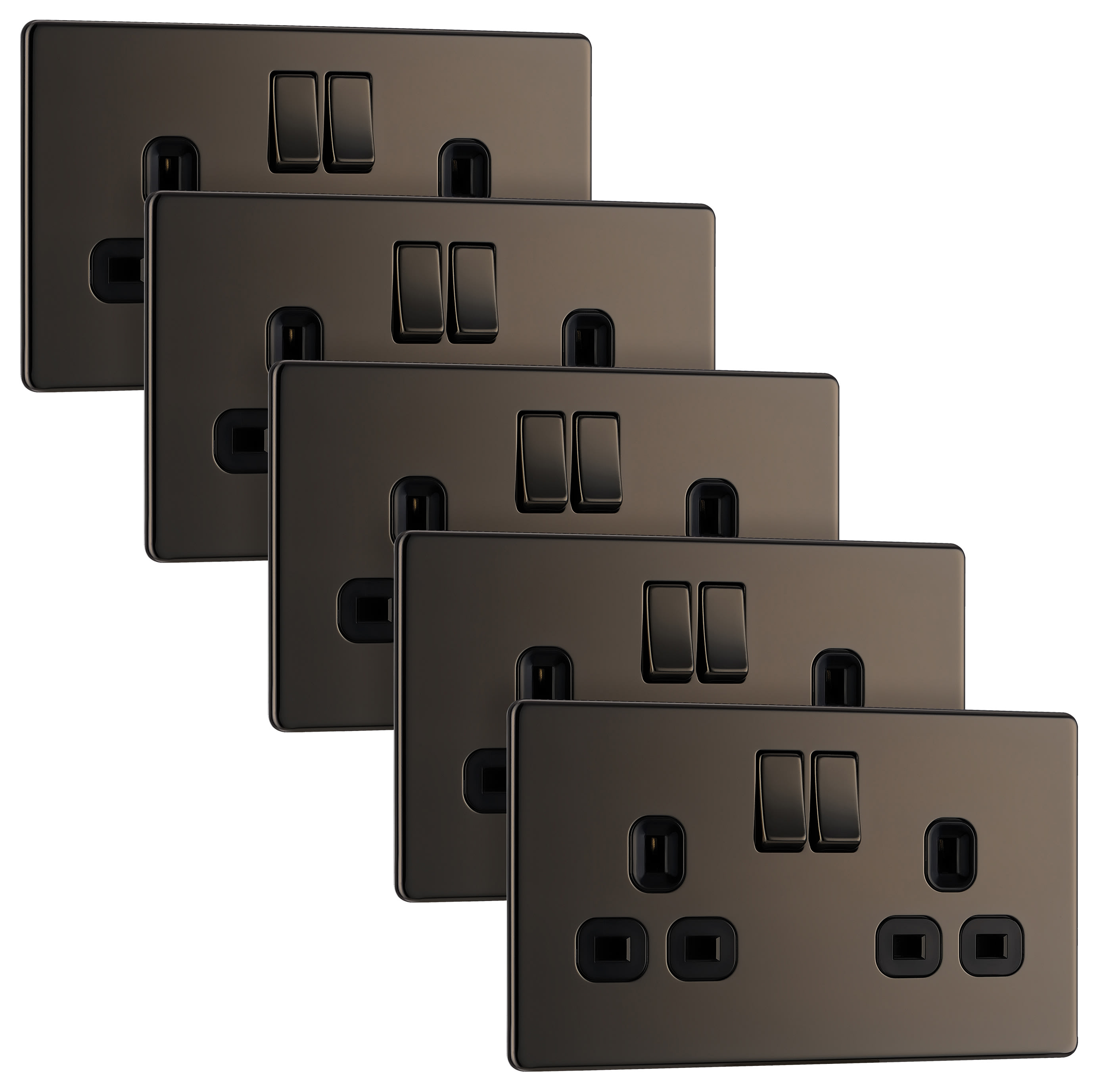 BG 13A Double Pole Screwless Flat Plate Double Switched Power Socket - Black Nickel - Pack of 5