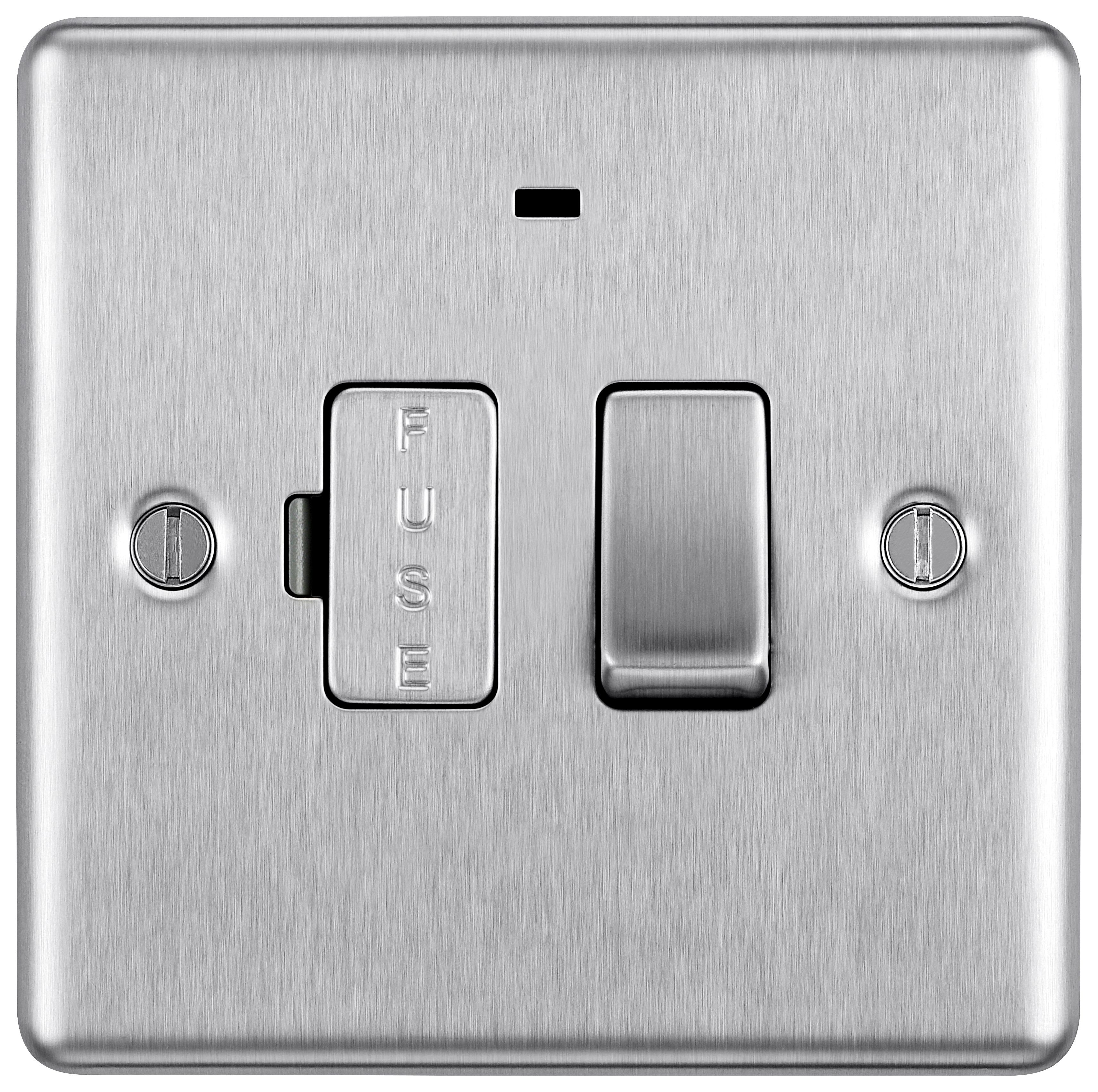 BG 13A Screwed Raised Plate Switched Fused Connection Unit with Power Indicator - Brushed Steel