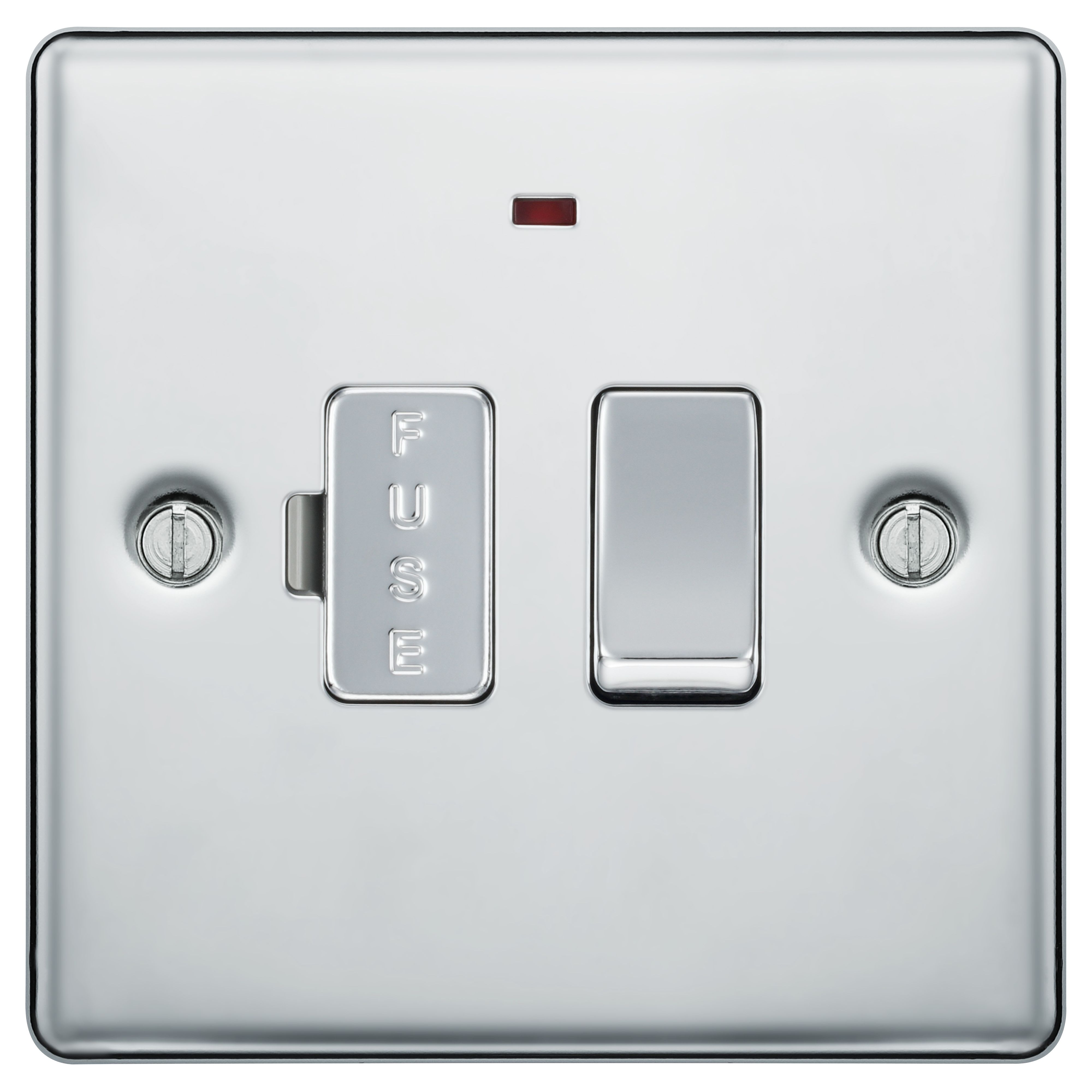 BG 13A Screwed Raised Plate Switched Fused Connection Unit with Power Indicator - Polished Chrome