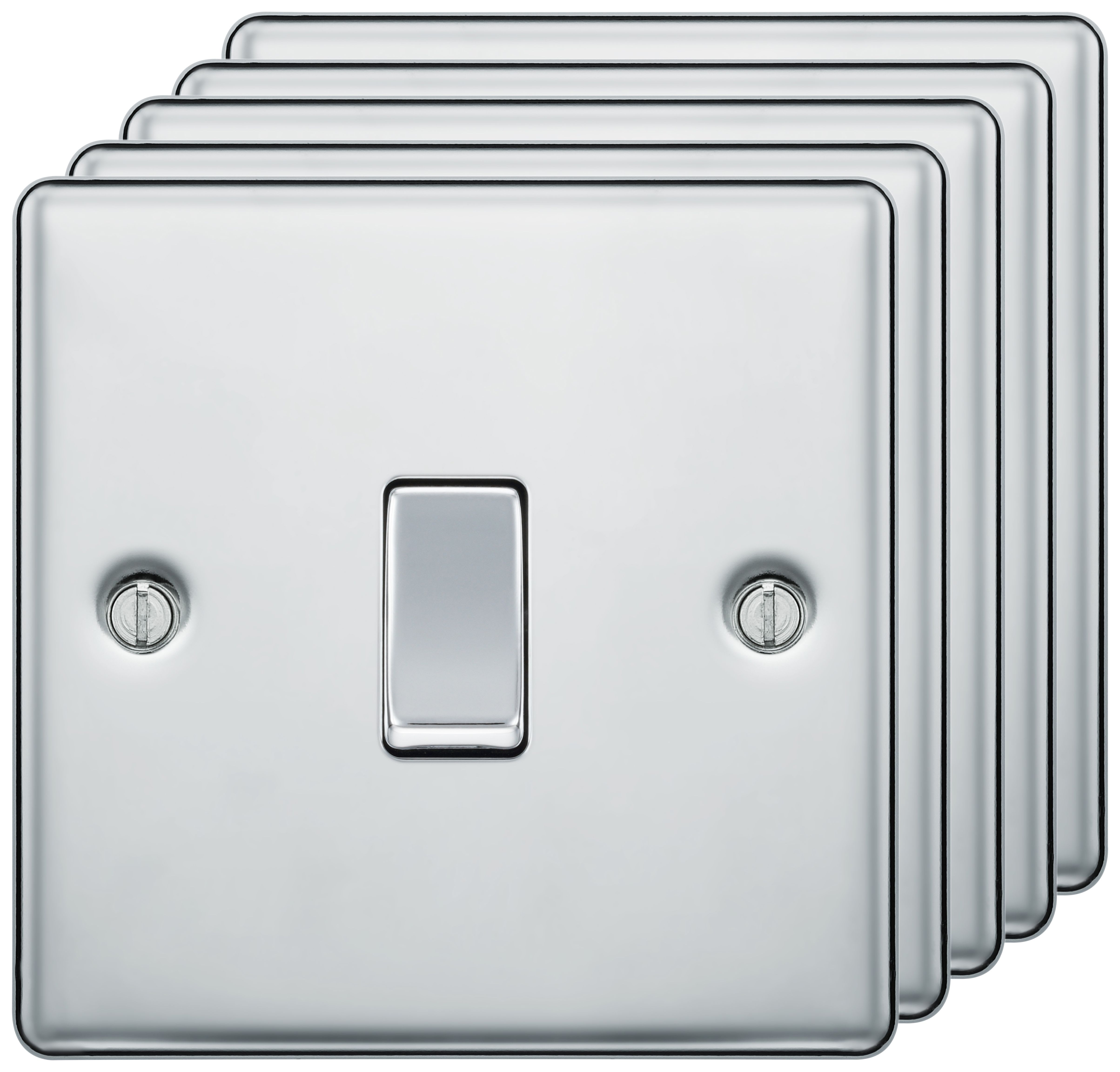 BG 2 Way 20A 16Ax Screwed Raised Plate Single Switch - Polished Chrome - Pack of 5