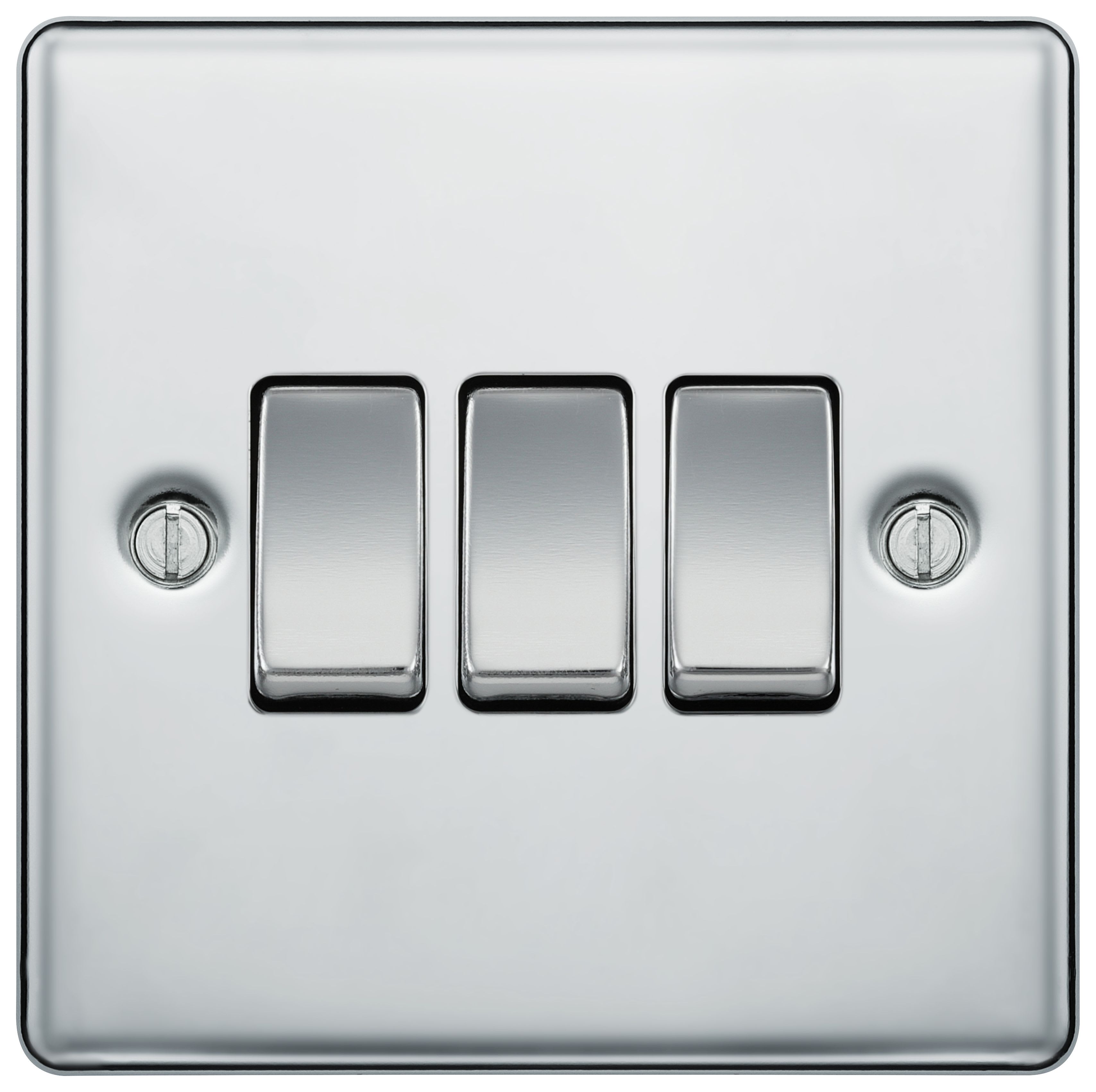 BG 2 Way 20A 16Ax Screwed Raised Plate Triple Switch - Polished Chrome