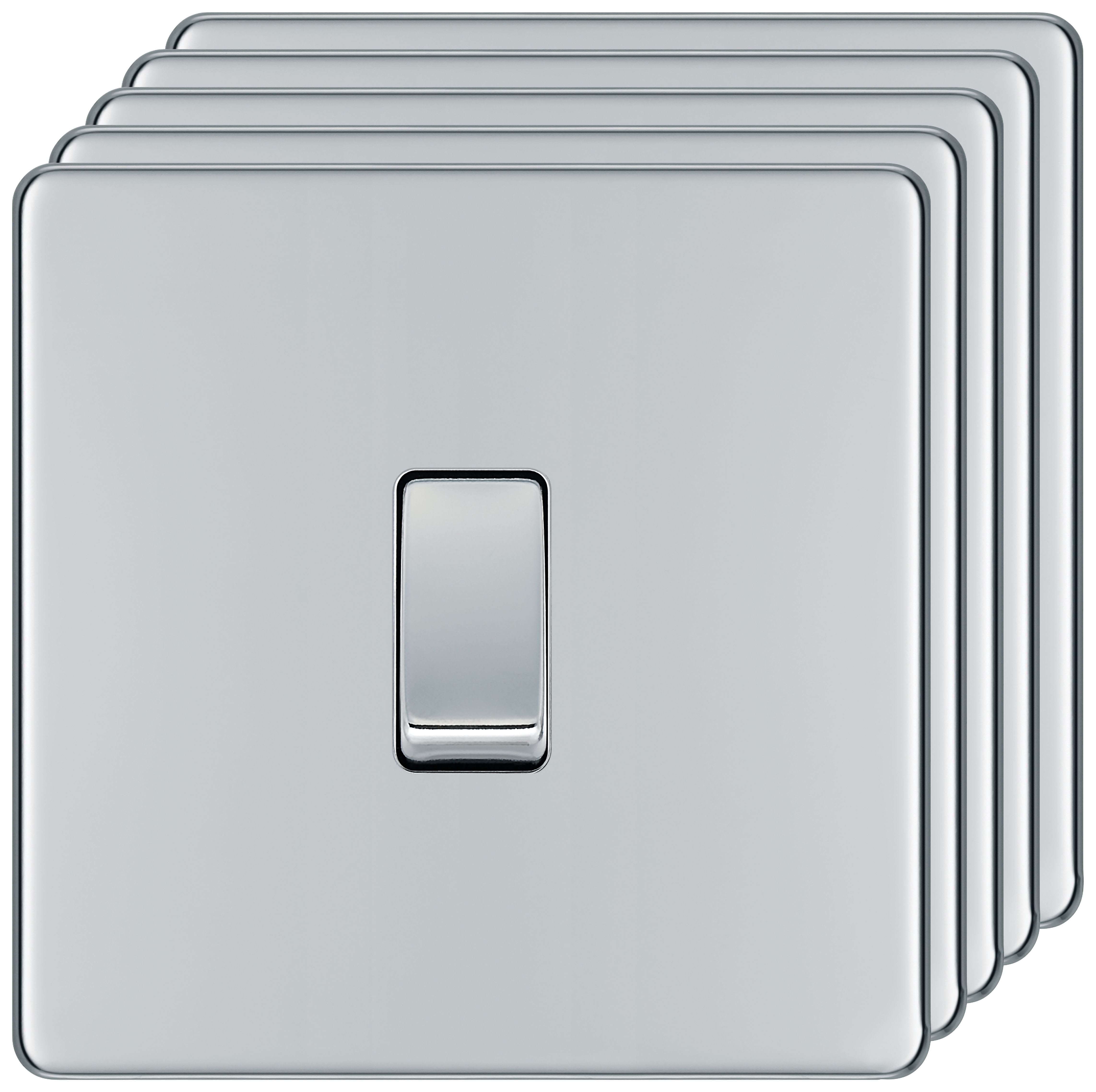 BG 2 Way 20A 16Ax Screwless Flatplate Single Switch - Polished Chrome - Pack of 5