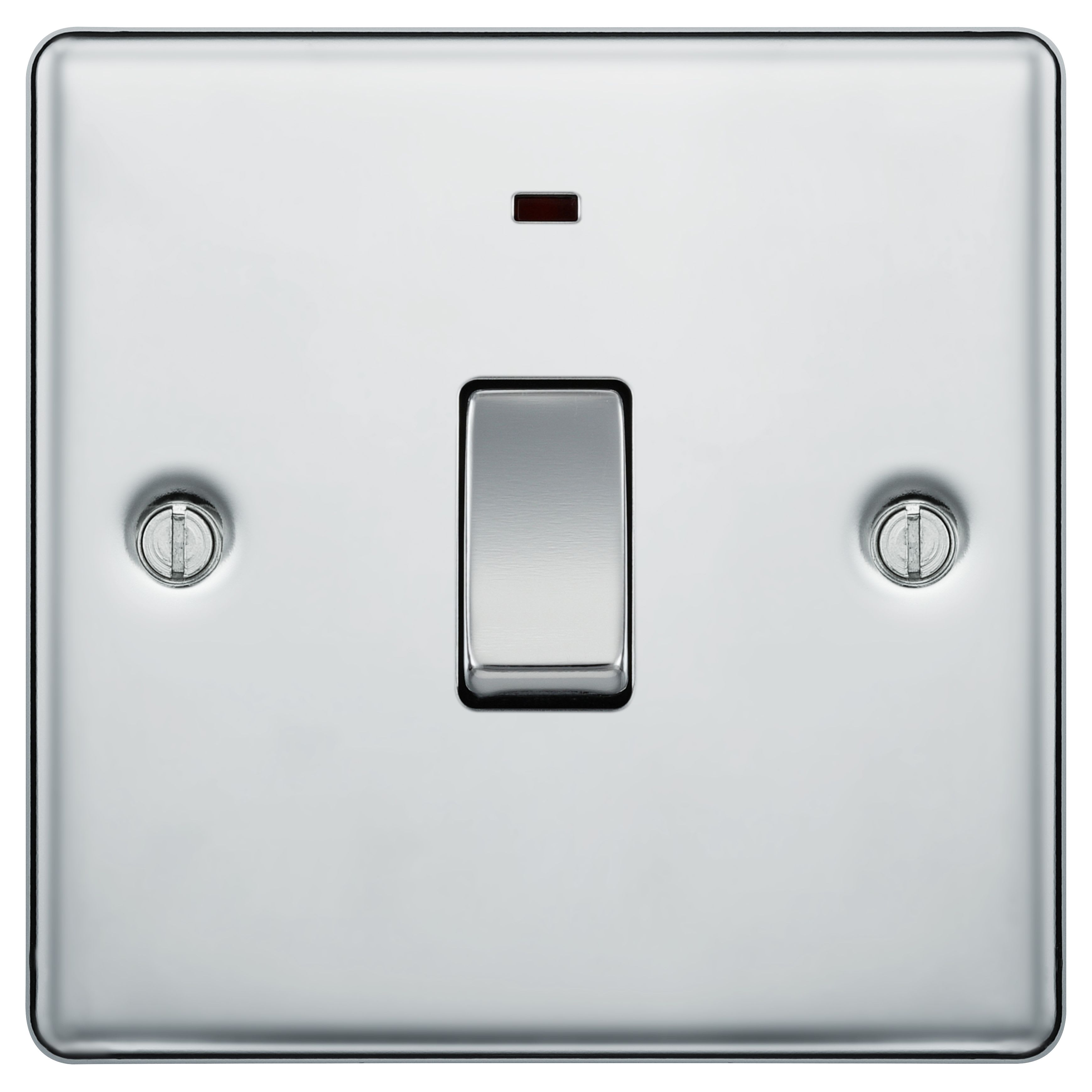 BG 20A Screwed Raised Plate Single Switch with Power Indicator - Polished Chrome