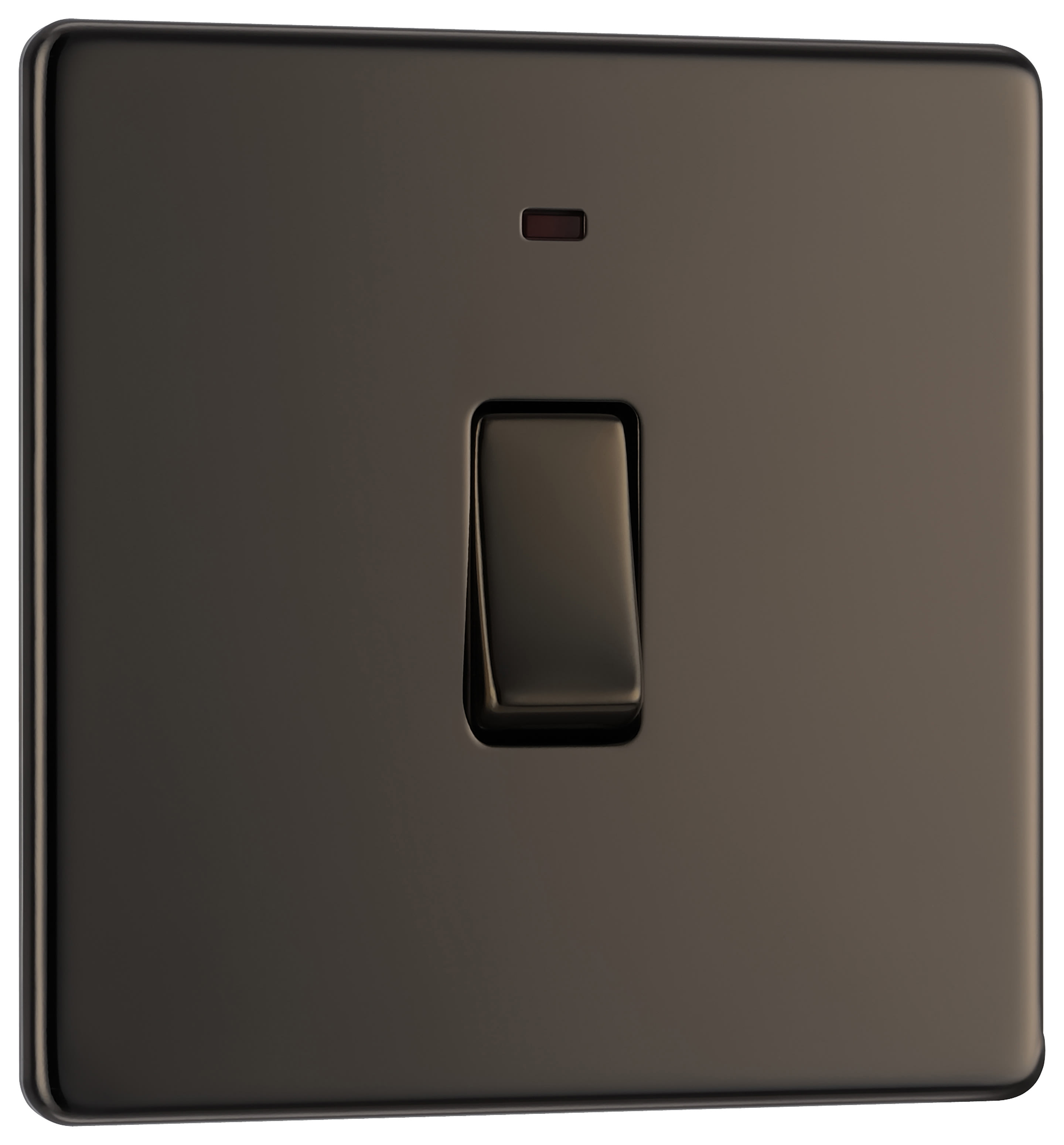 BG 20A Screwless Flat Plate Single Switch with Power Indicator - Black Nickel