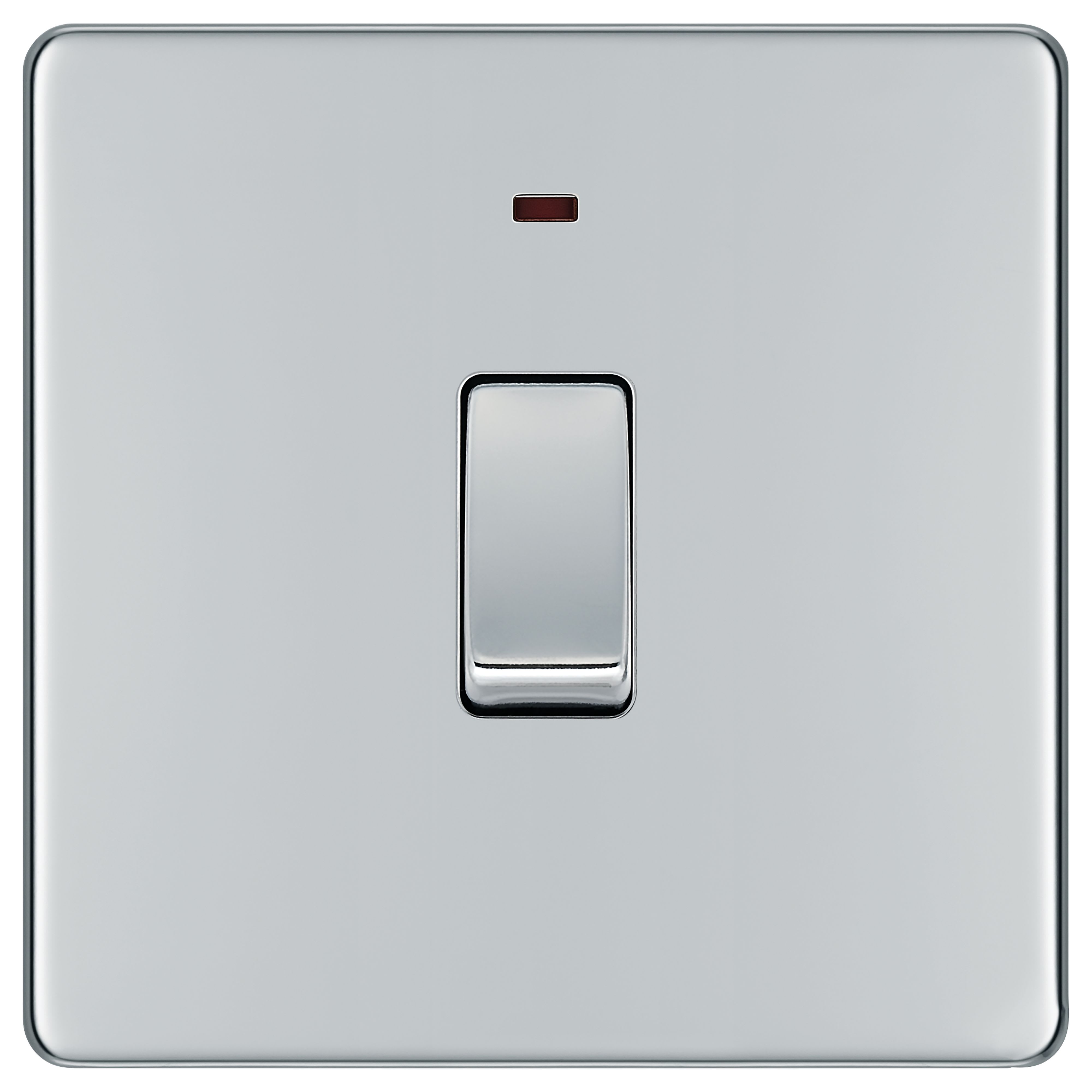 BG 20A Screwless Flat Plate Single Switch with Power Indicator - Polished Chrome