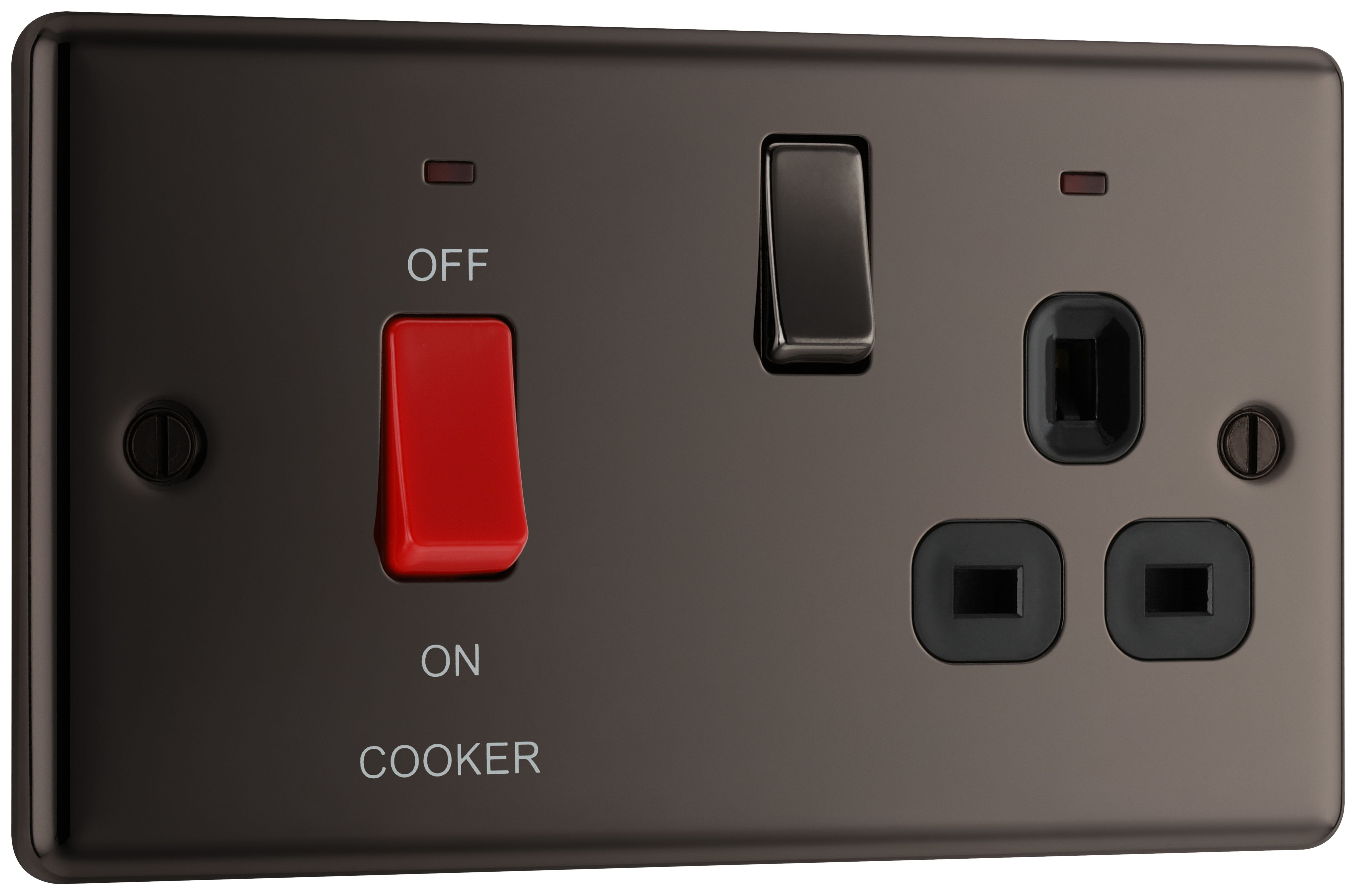 BG 45A Screwed Raised Plate Cooker Control Unit with Switched 13A Power Socket includes Power Indicators - Black Nickel