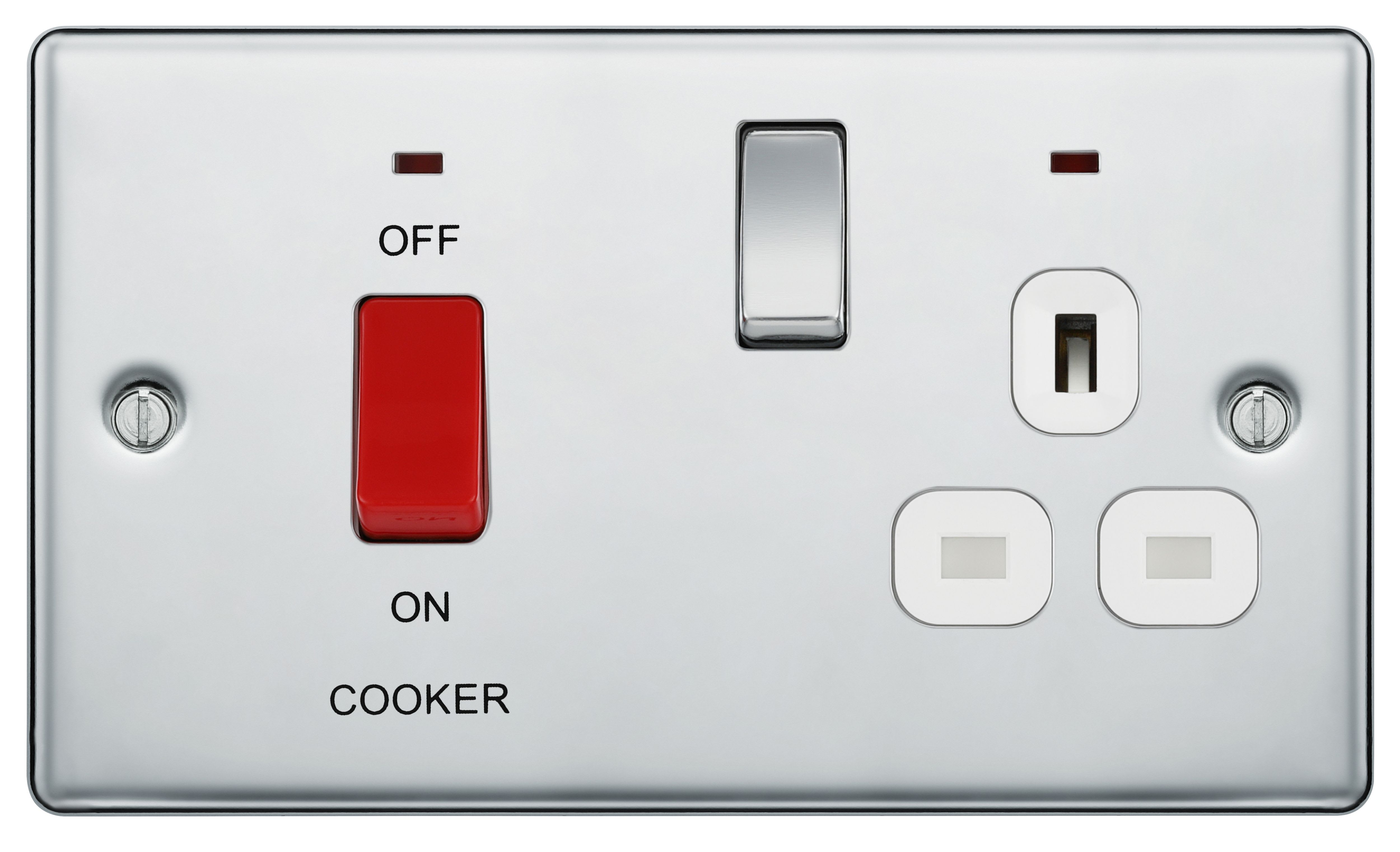 BG 45A Screwed Raised Plate Cooker Control Unit with Switched 13A Power Socket includes Power Indicators - Polished Chrome