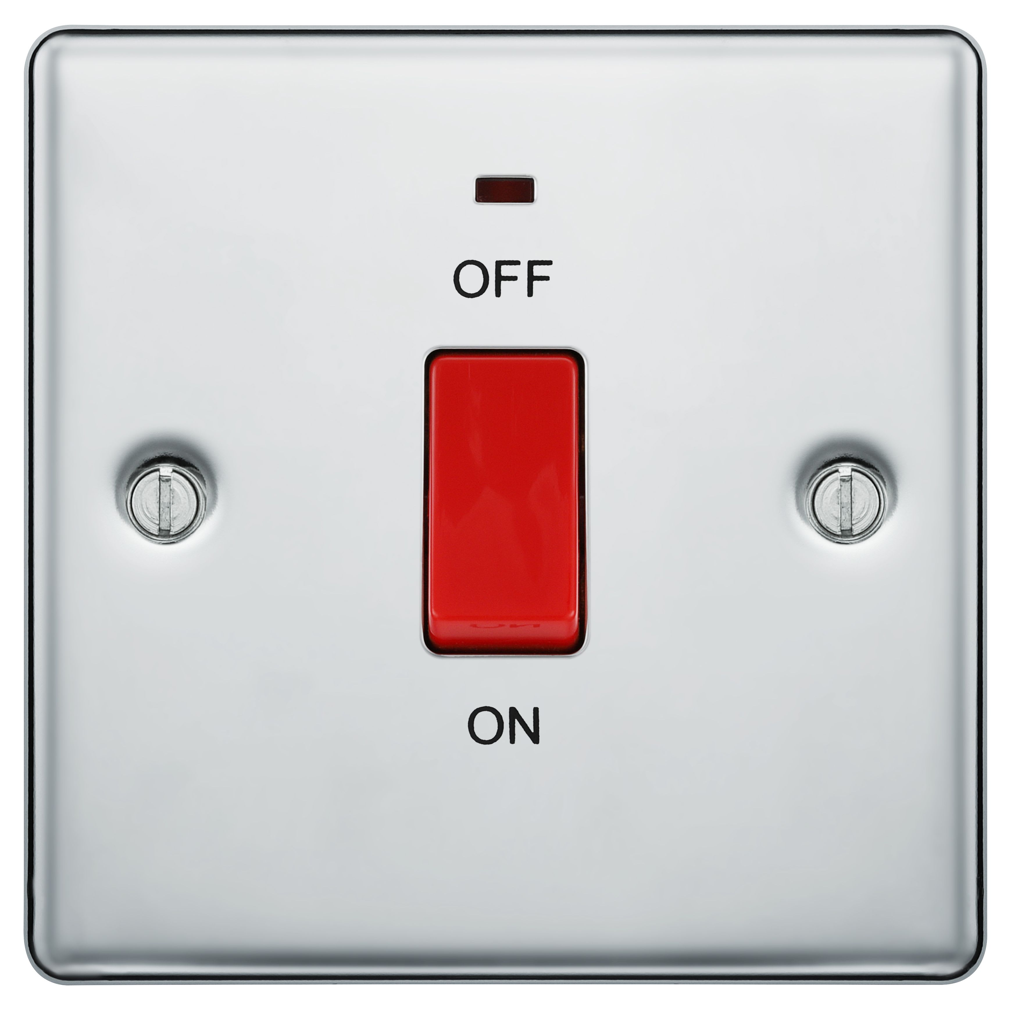 BG 45A Screwed Raised Plate Square Cooker Control Unit with Power Indicator - Polished Chrome