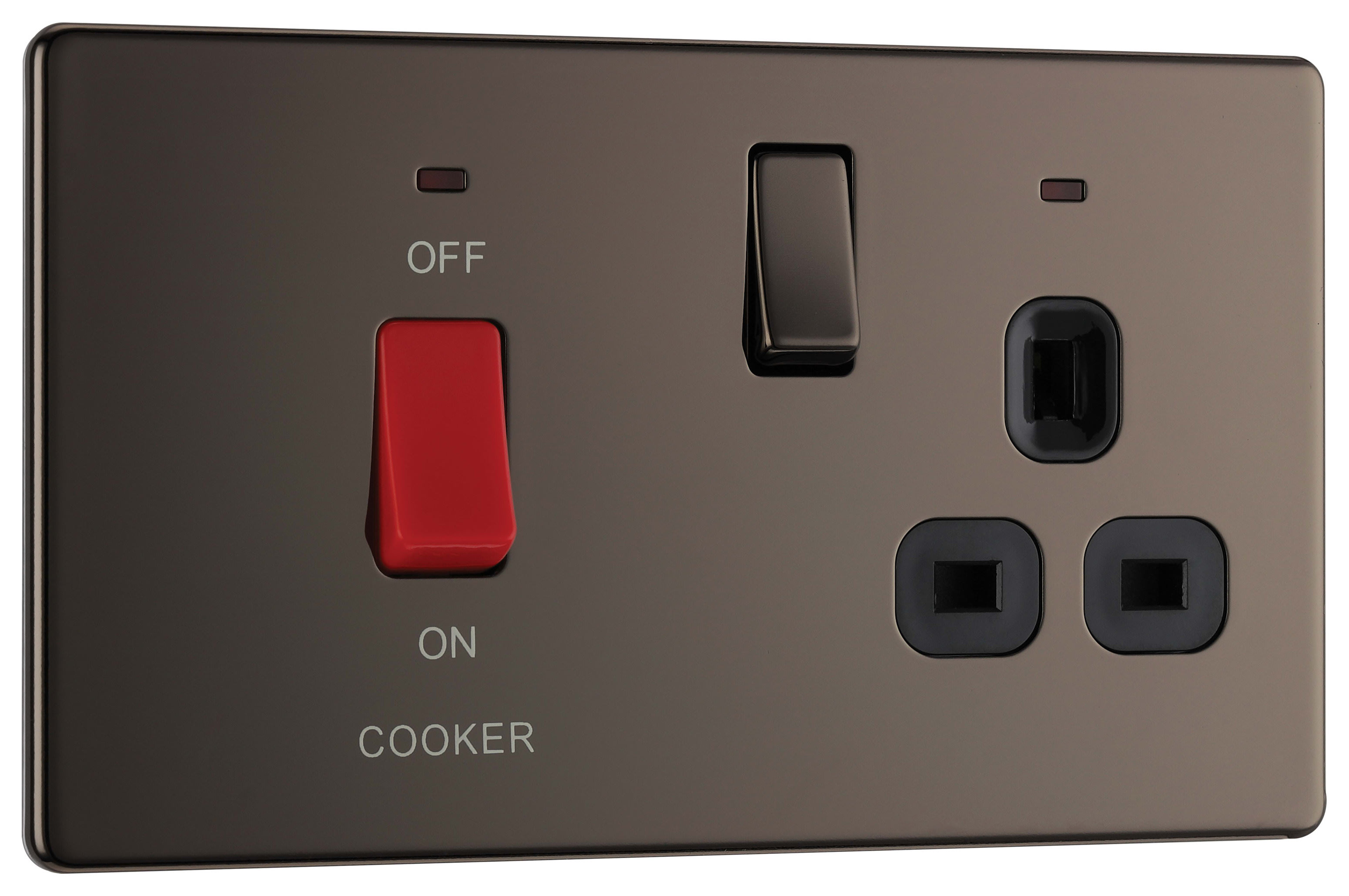 BG 45A Screwless Flat Plate Cooker Control Unit with Switched 13A Power Socket Includes Power Indicators - Black Nickel