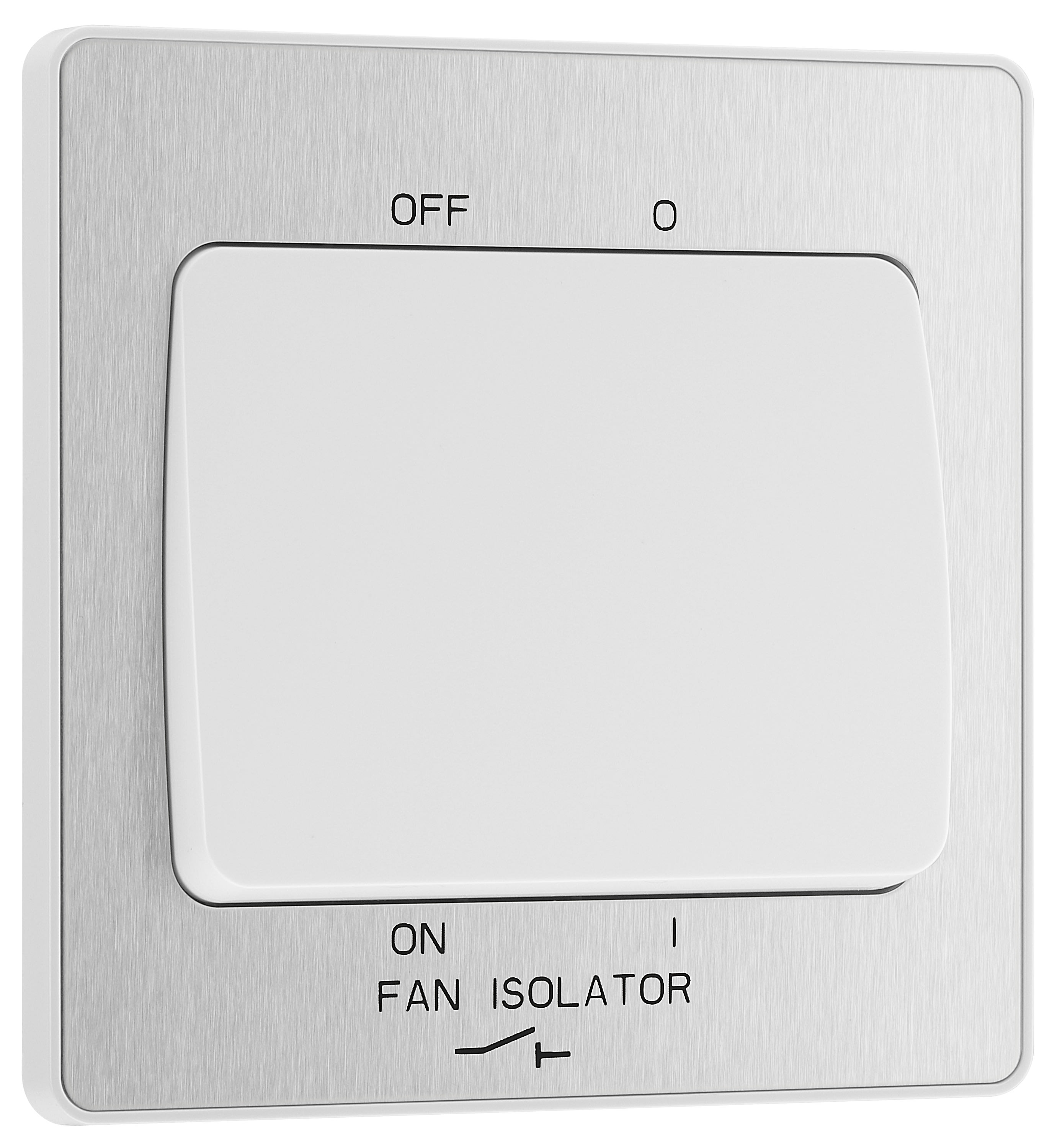 This BG Evolve 10A Triple Pole Fan Isolator Switch provides a safe and simple method of isolating mechanical fan units. This switch has a low profile screwless flat plate that clips on and off, making it ideal for modern interiors. The brushed steel finish adds a touch of contemporary elegance to any room, effortlessly complementing a wide range of interior design styles.