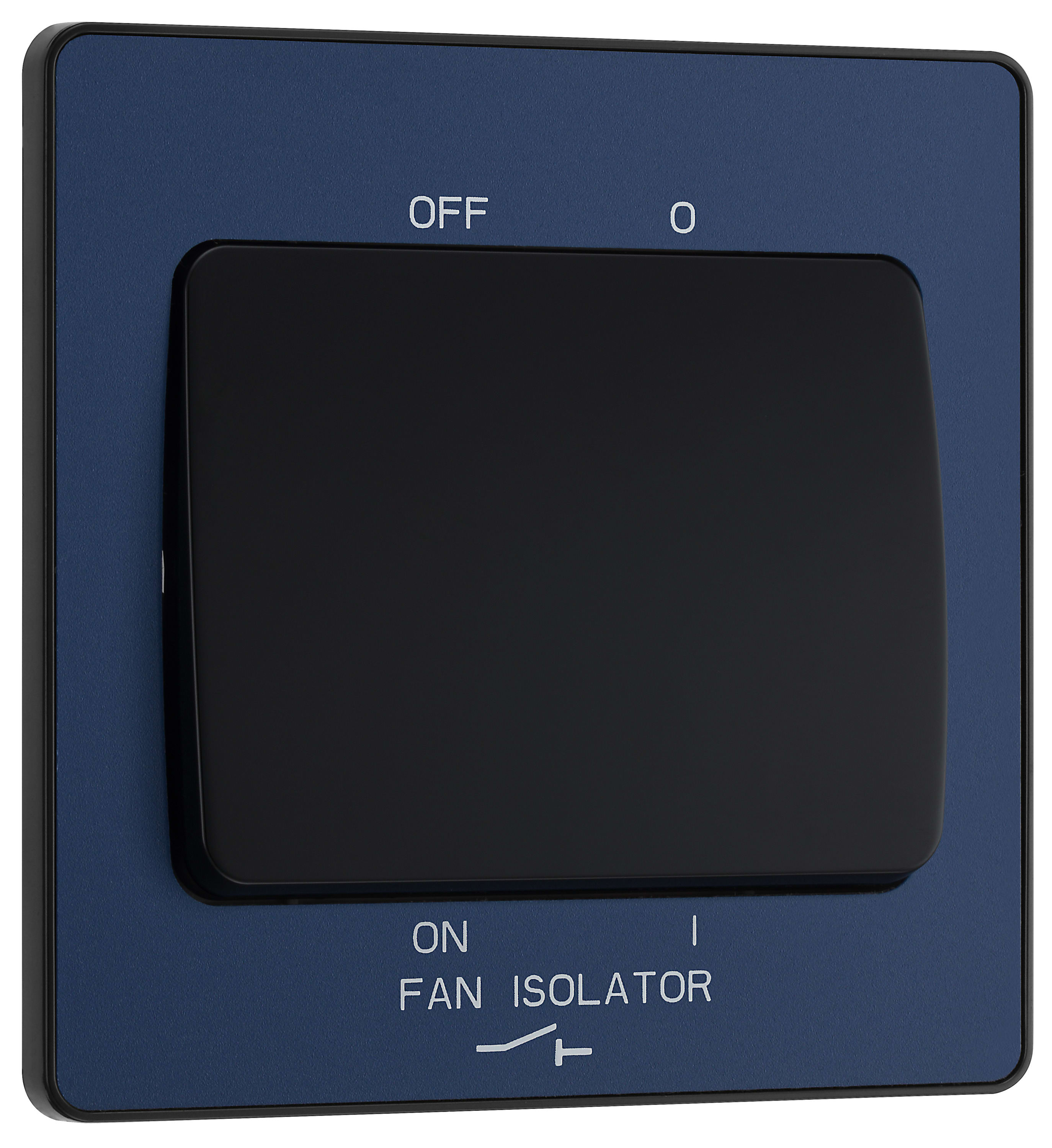 The BG Evolve Triple Pole Fan Isolator Switch provides a safe and simple method of isolating mechanical fan units. This switch has a low profile screwless flat plate that clips on and off, making it ideal for modern interiors. The distinctive matt blue finish adds a touch of sophistication and personality to any room, making it a standout feature in your home or office decor.