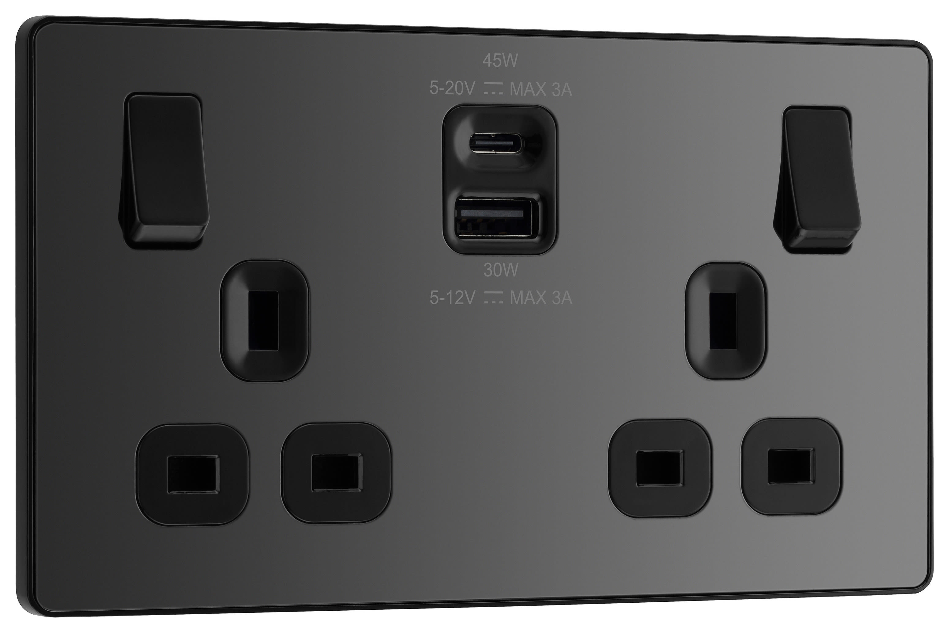 BG Evolve 13A Super-Fast Double Socket USB A&C, 45W - Black Chrome