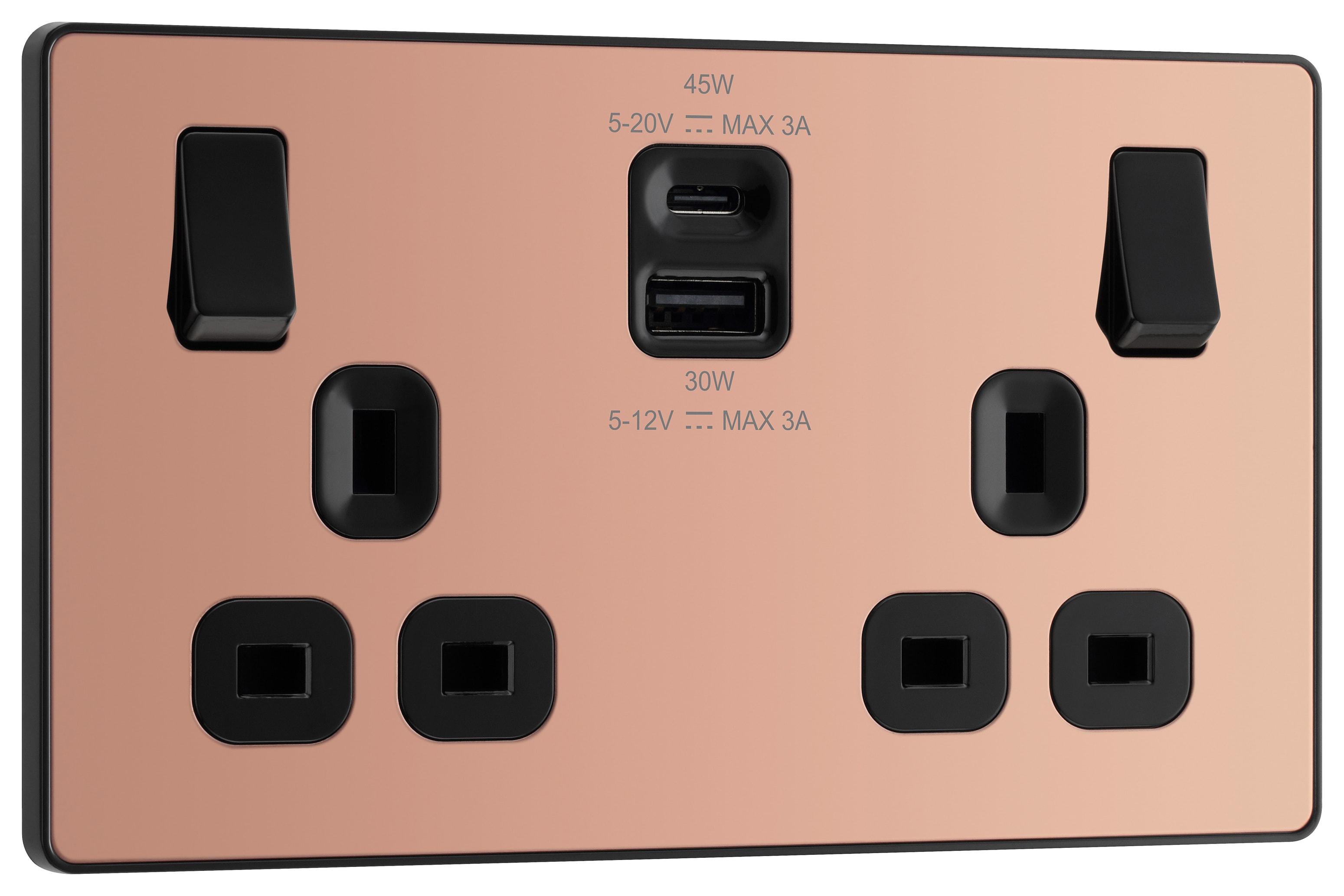 BG Evolve 13A Super-Fast Double Socket USB A&C, 45W - Polished Copper