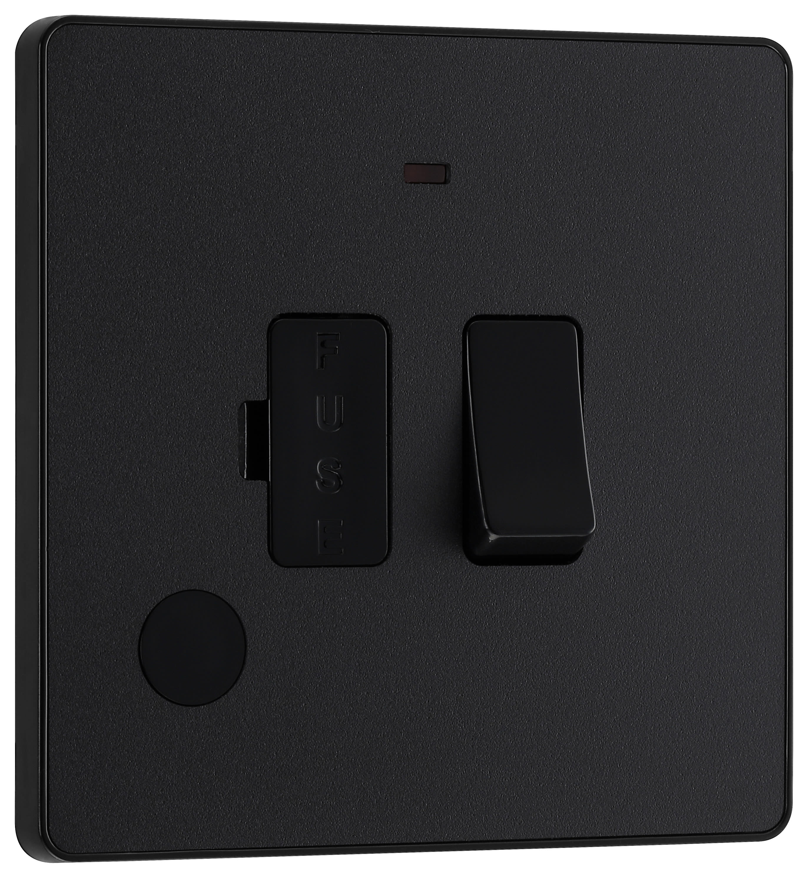 The BG Evolve Switched Fused Connection Unit provides an outlet from the mains containing the fuse, ideal for spur circuits and hardwired appliances. This fused connection unit has a low profile screwless flat plate that clips on and off, making it ideal for modern interiors. The matt black finish adds a touch of modern elegance to any room, making it the perfect complement to a variety of interior design styles.
