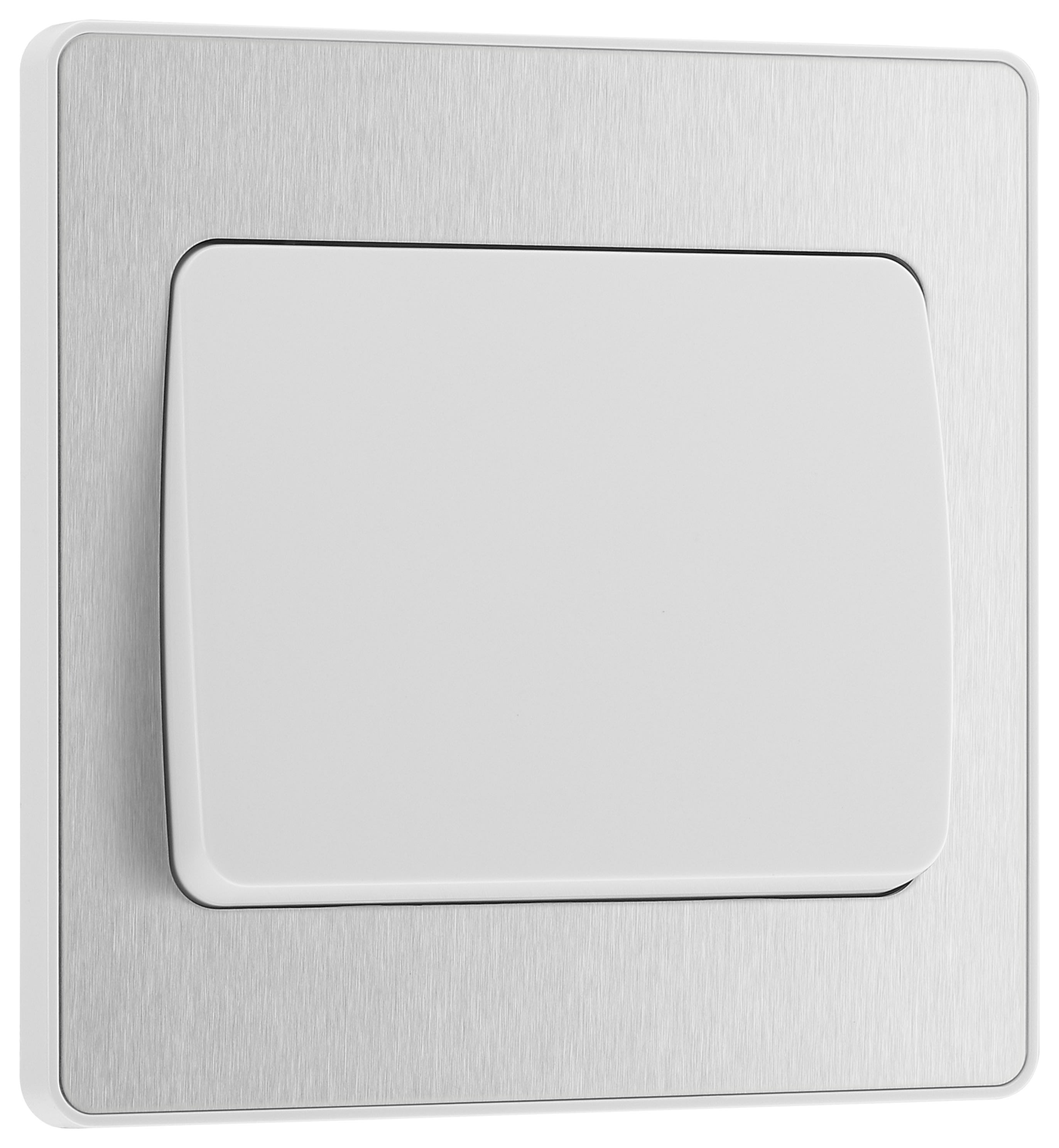 This BG Evolve Single Light Switch will operate one light switch in a room. The 2 way switching allows a second switch to be added to the circuit to operate the same light from another location (e.g. at the top and bottom of the stairs). This switch has a wide rocker and a low profile screwless flat plate that clips on and off, making it ideal for modern interiors. The brushed steel finish adds a touch of contemporary elegance to any room, effortlessly complementing a wide range of interior design styles.