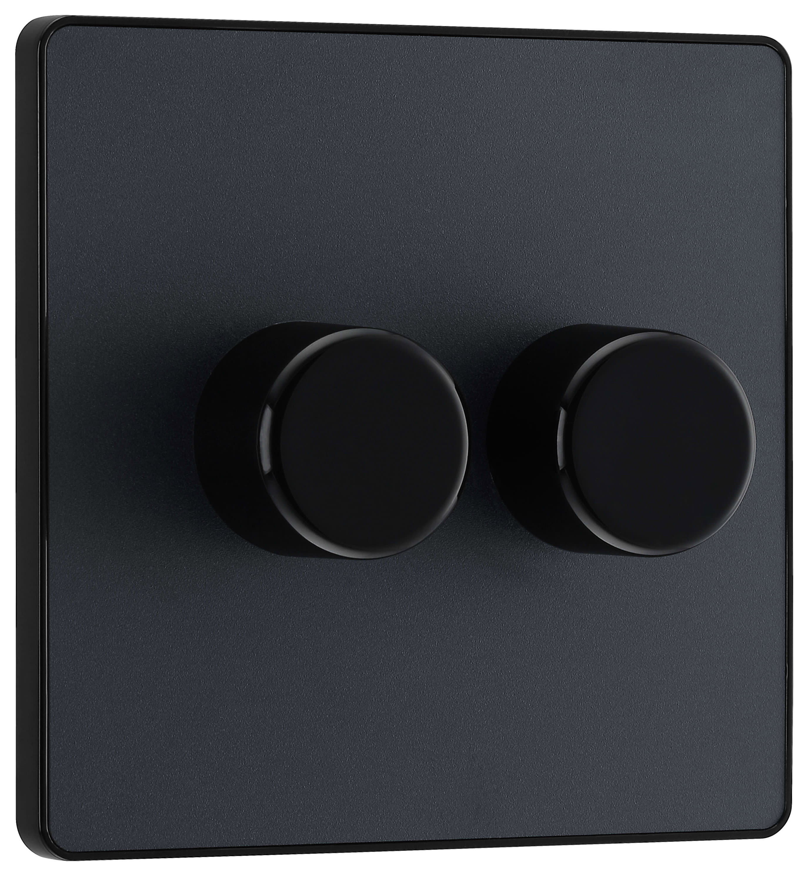 The BG Evolve Trailing Edge Led Push On / Off Double Dimmer Switch allows you to control your light levels and set the mood. The intelligent electronic circuit monitors the connected load and provides a soft-start with protection against thermal, current and voltage overload, and is suitable for dimming LED, dimmable CFL's and traditional lighting. This switch has a low profile screwless flat plate that clips on and off, making it ideal for modern interiors. The sleek matt grey finish adds a touch of understated sophistication to any room, effortlessly complementing a wide range of interior design styles.