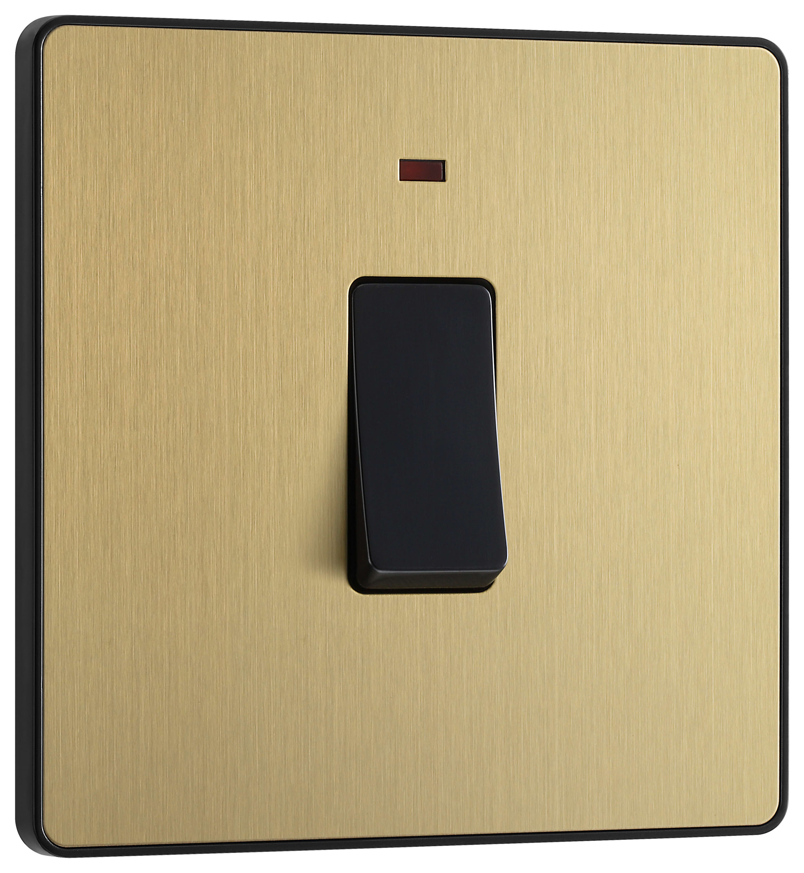 The BG Evolve Double Pole Switch with Power Led Indicator has been designed for the connection of refrigerators, water heaters, central heating boilers and many other fixed appliances. This switch has a low profile screwless flat plate that clips on and off, making it ideal for modern interiors. Featuring a sleek brushed brass finish, this switch effortlessly elevates the aesthetic of any room, adding a touch of timeless elegance to your interior design scheme.