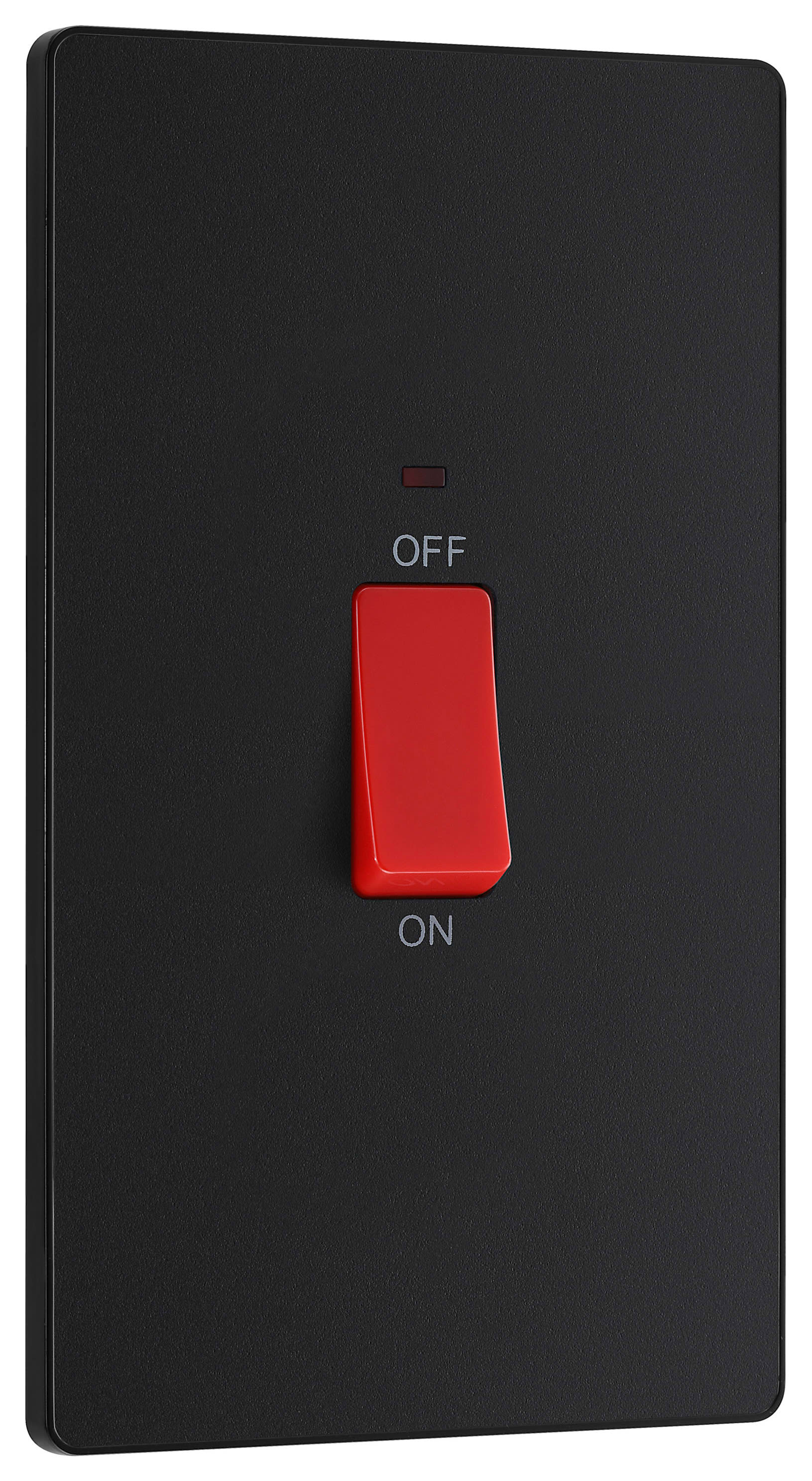 BG Evolve 45A Rectangular Double Pole Switch with Led Power Indicator - Matt Black