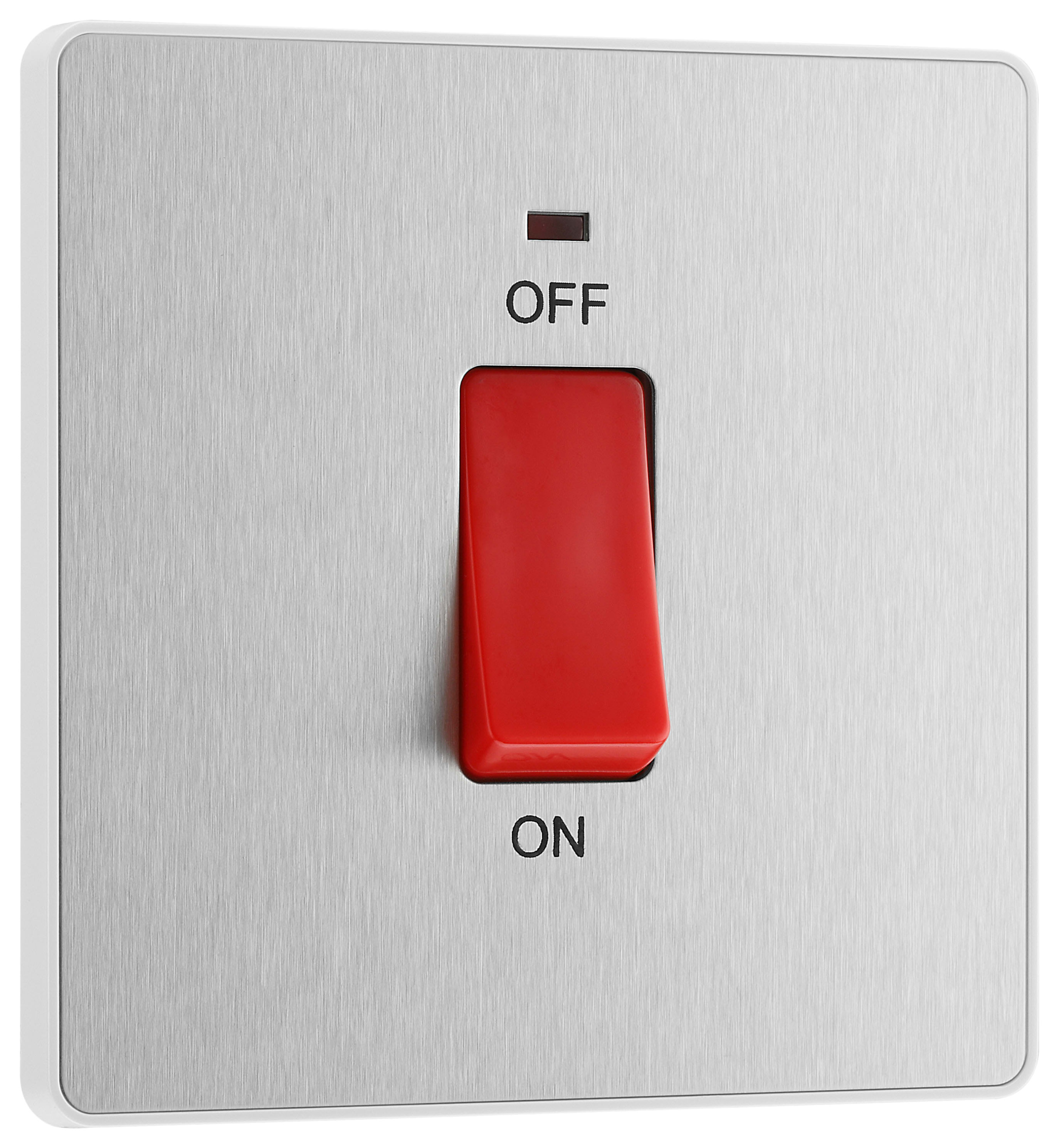 This BG Evolve Square Double Pole Switch with Led Power Indicator is ideal for use with cookers and ovens. This switch has a low profile screwless flat plate that clips on and off, making it ideal for modern interiors. The brushed steel finish adds a touch of contemporary elegance to any room, effortlessly complementing a wide range of interior design styles.