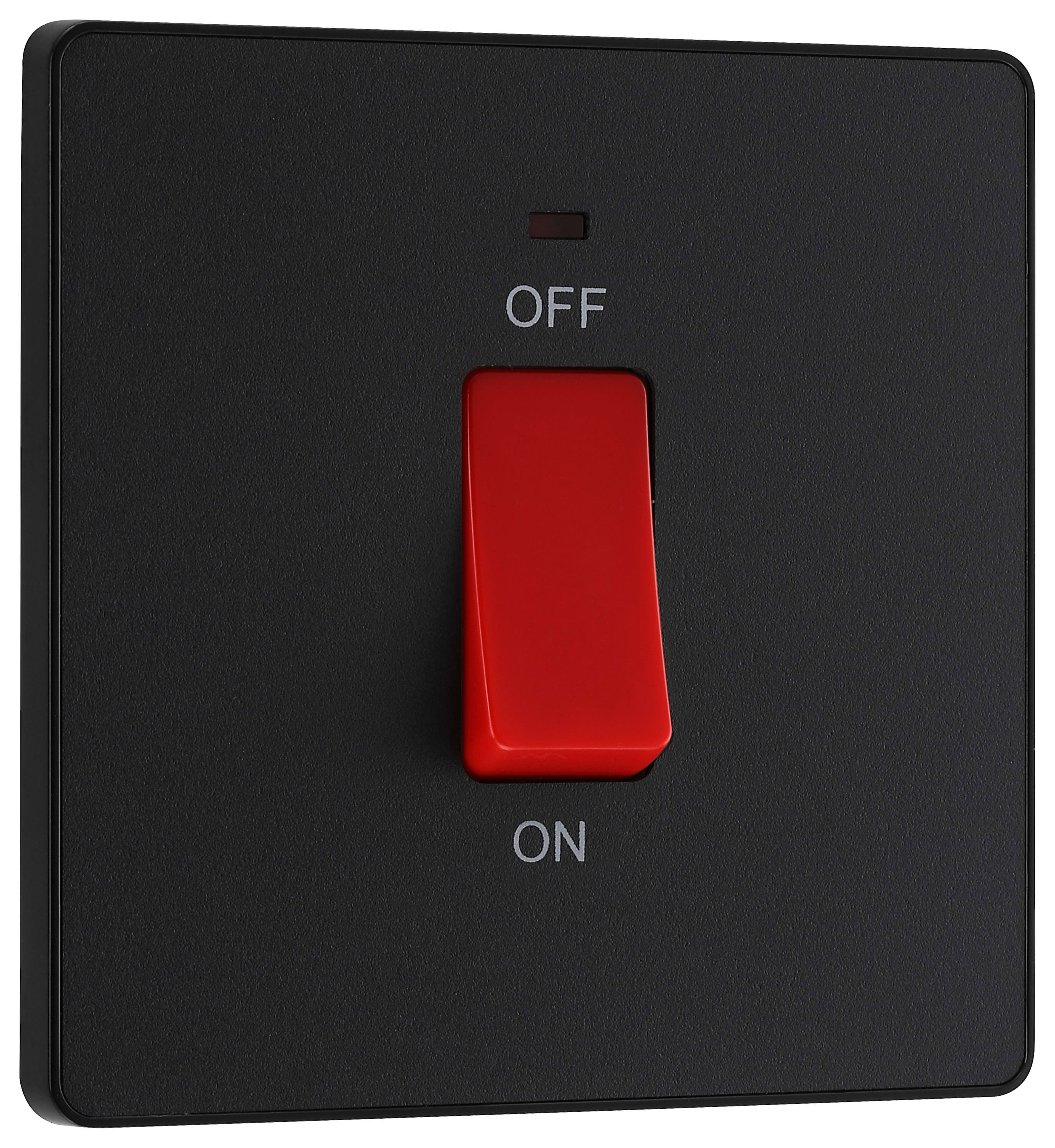 BG Evolve 45A Square Double Pole Switch with Led Power Indicator - Matt Black
