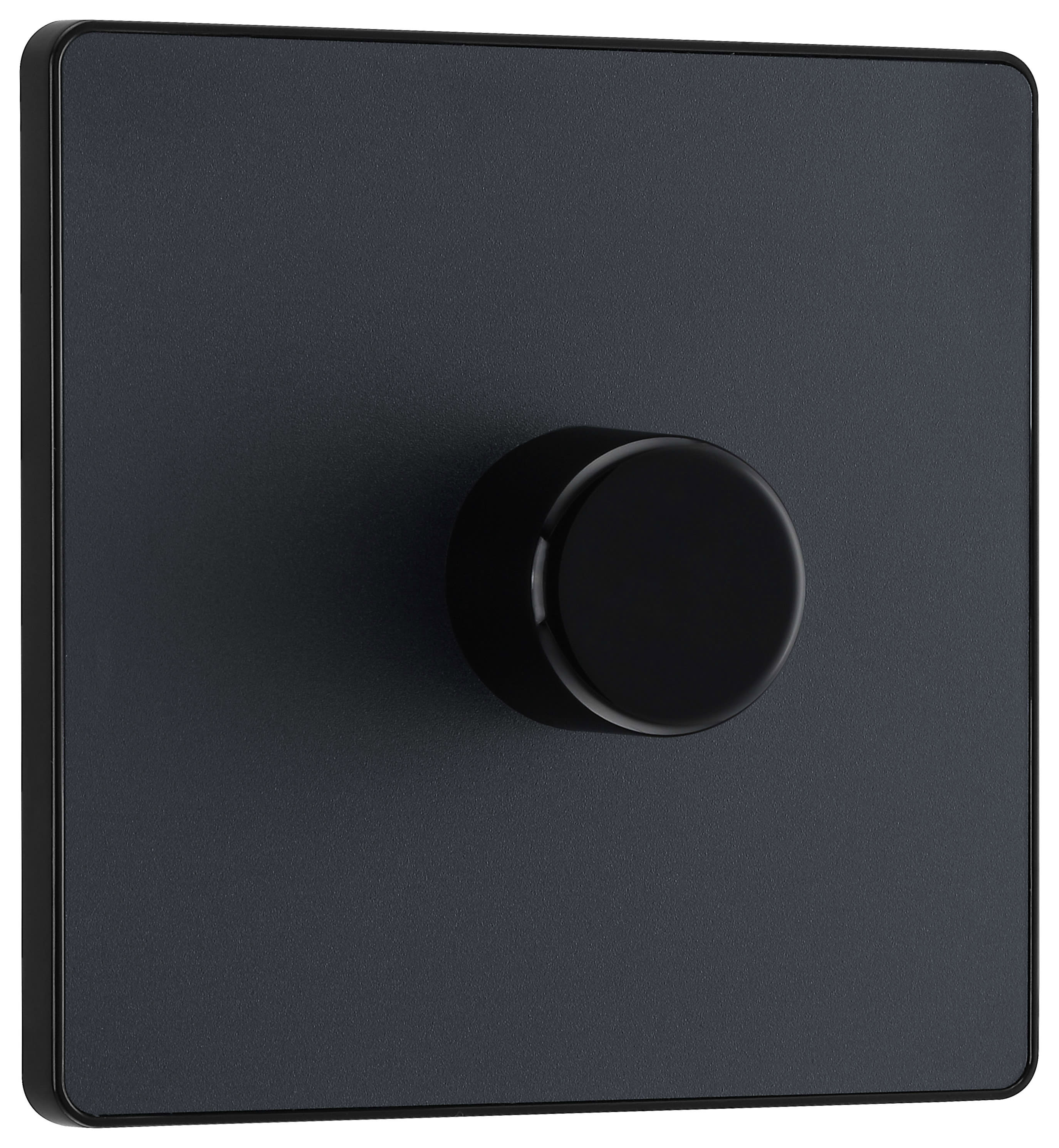 This Evolve matt grey trailing edge single dimmer switch from British General allows you to control your light levels and set the mood. The intelligent electronic circuit monitors the connected load and provides a soft-start with protection against thermal, current and voltage overload, and is suitable for dimming LED, dimmable CFL's and traditional lighting. This switch has a low profile screwless flat plate that clips on and off, making it ideal for modern interiors. The sleek matt grey finish adds a touch of understated sophistication to any room, effortlessly complementing a wide range of interior design styles.