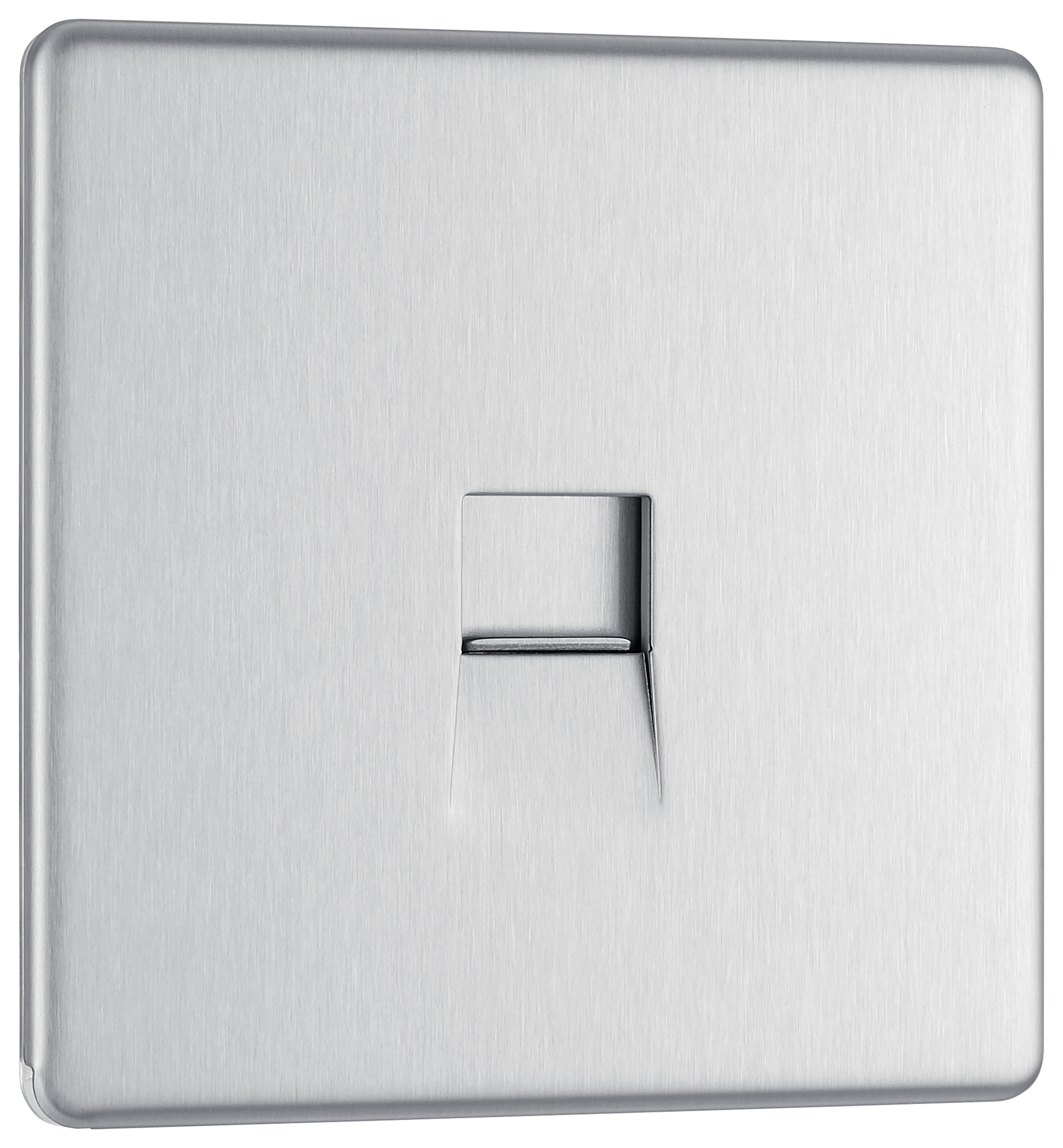 BG Screwless Flat Plate Screw Type Single Master Telephone Socket - Brushed Steel