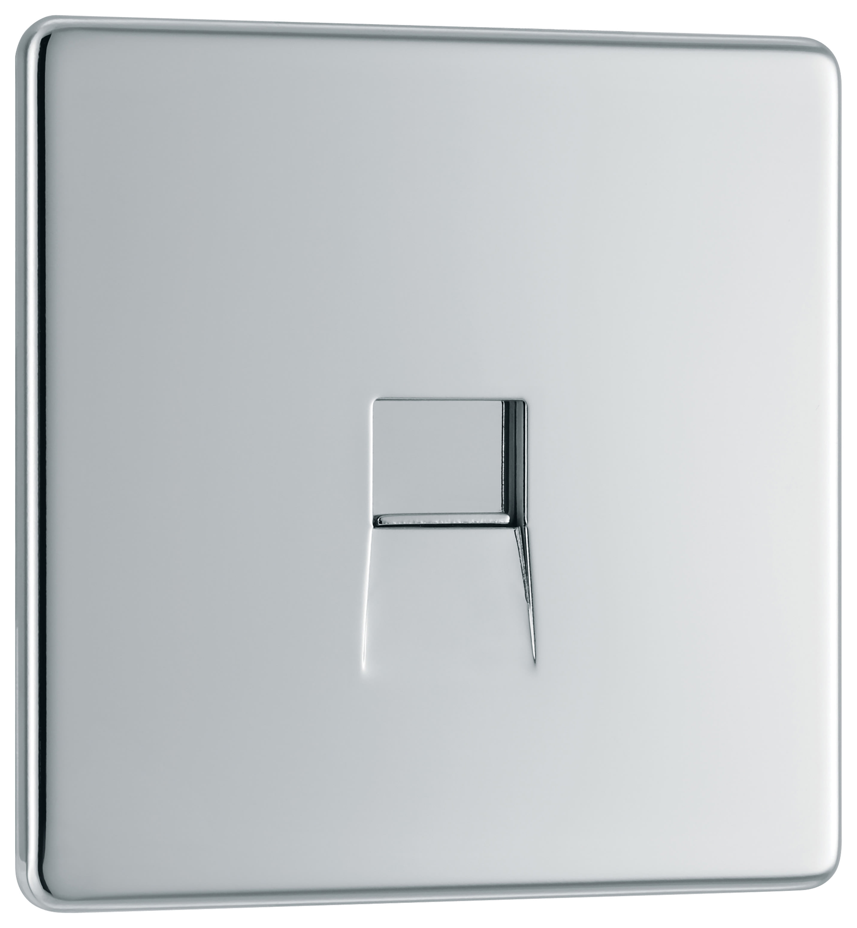 BG Screwless Flat Plate Screw Type Single Master Telephone Socket - Polished Chrome