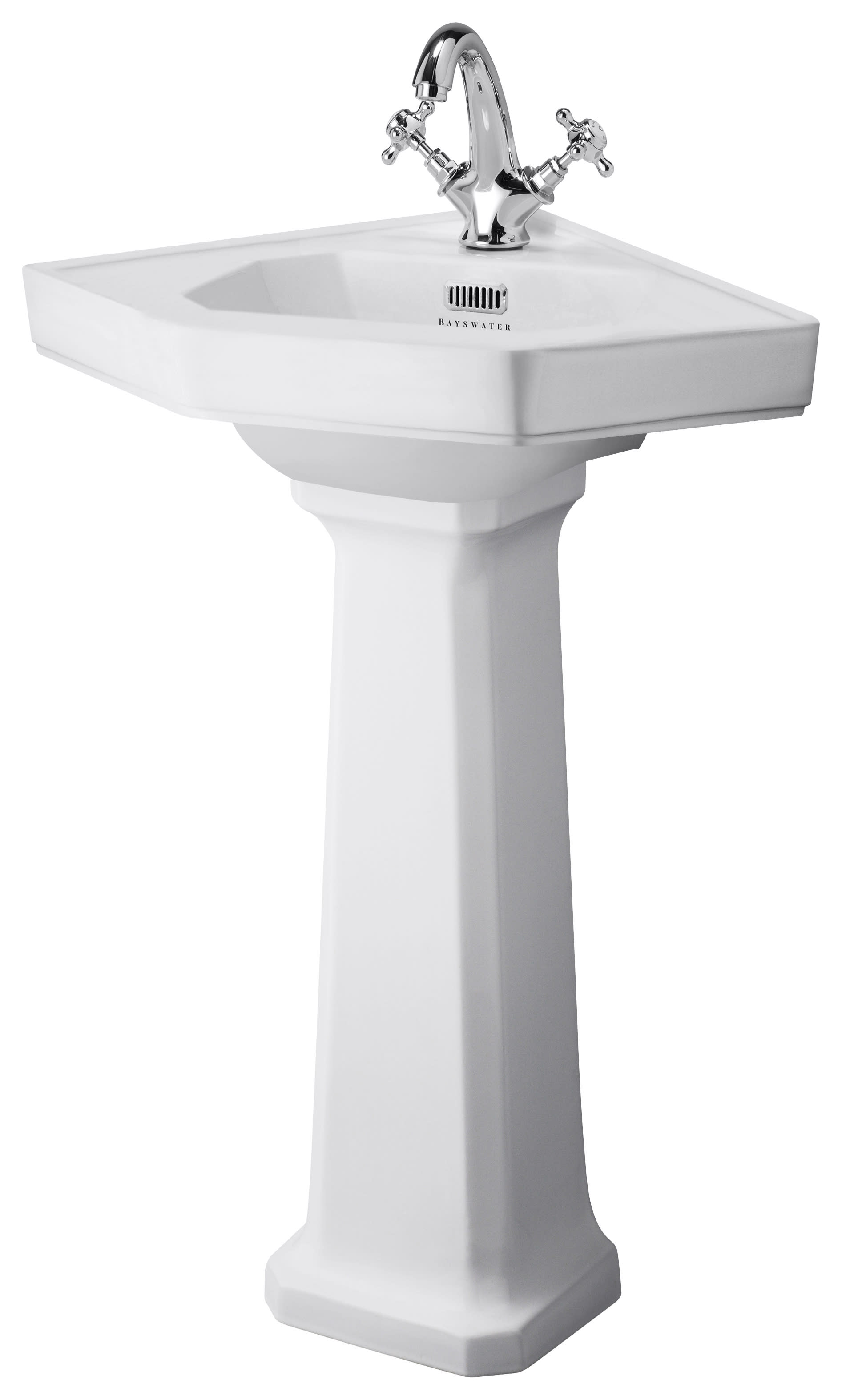Bayswater Fitzroy Traditional 1 Tap Hole Corner Basin with Comfort Height Full Pedestal - 291mm