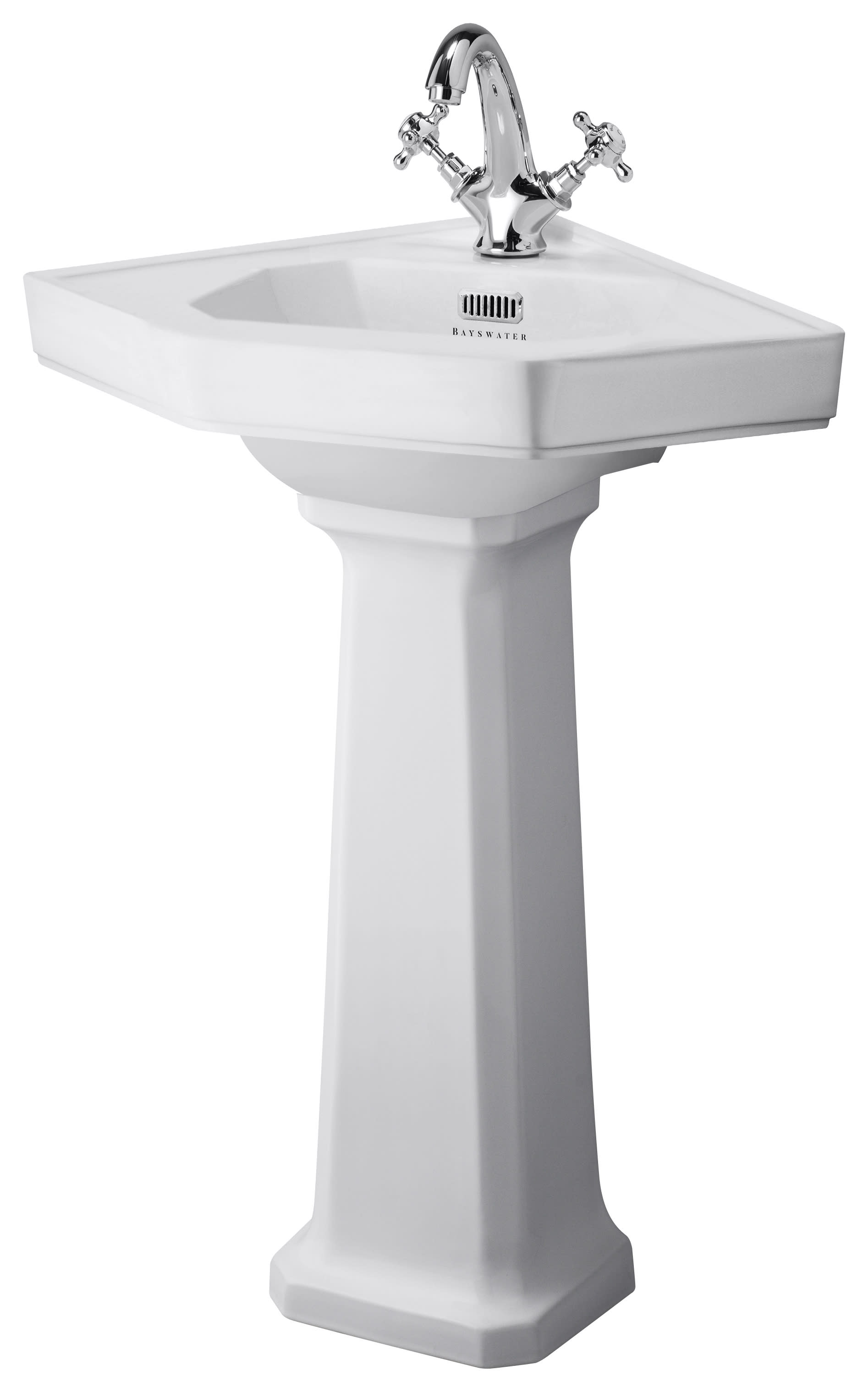 Bayswater Fitzroy Traditional 1 Tap Hole Corner Basin with Full Pedestal - 291mm