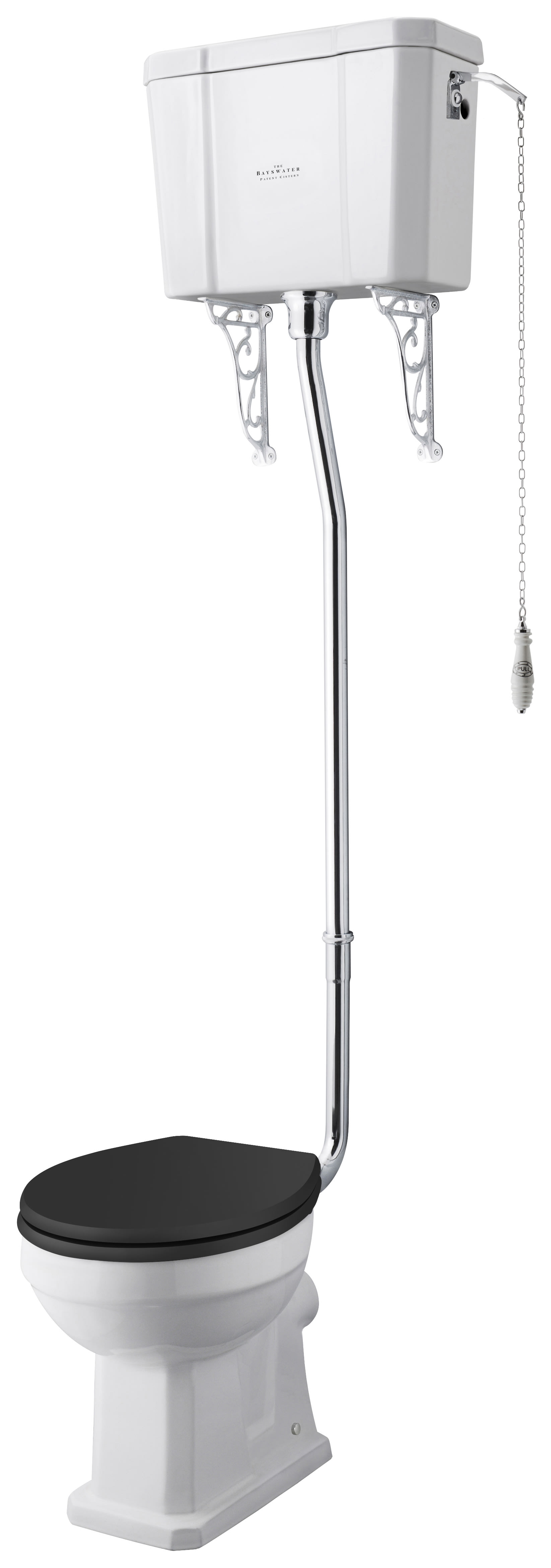 Bayswater Fitzroy Traditional High Level Comfort Height Toilet Pan, Cistern & Black Soft Close Seat