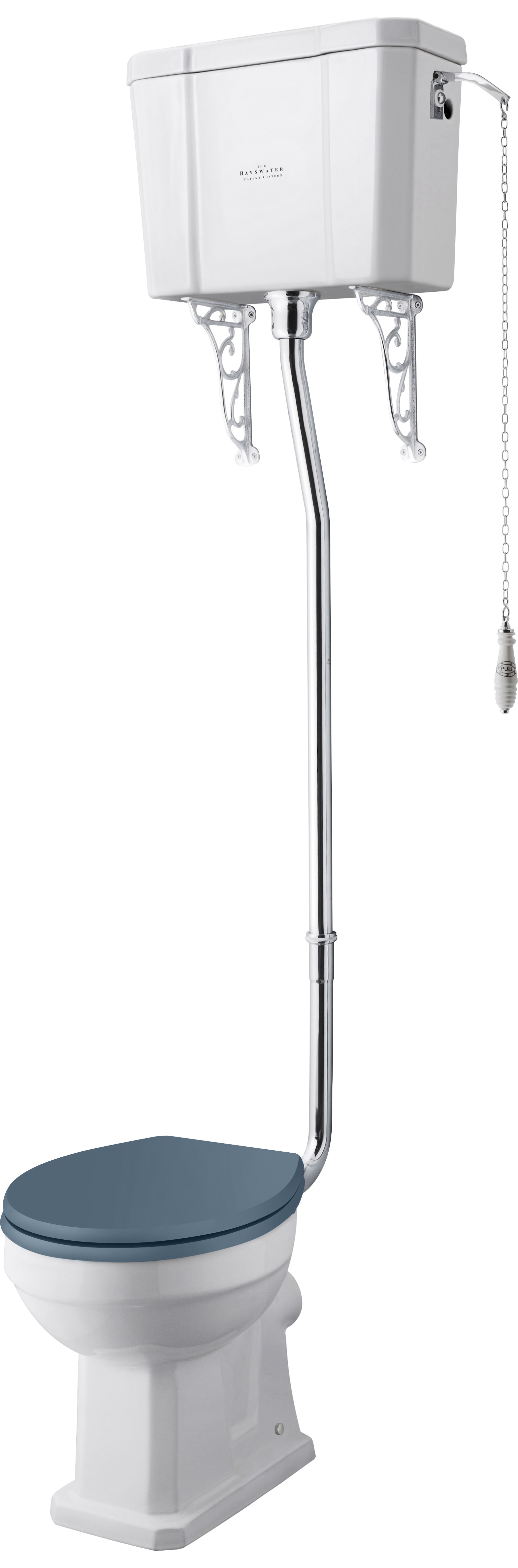 Bayswater Fitzroy Traditional High Level Comfort Height Toilet Pan, Cistern & Stiffkey Blue Soft Close Seat