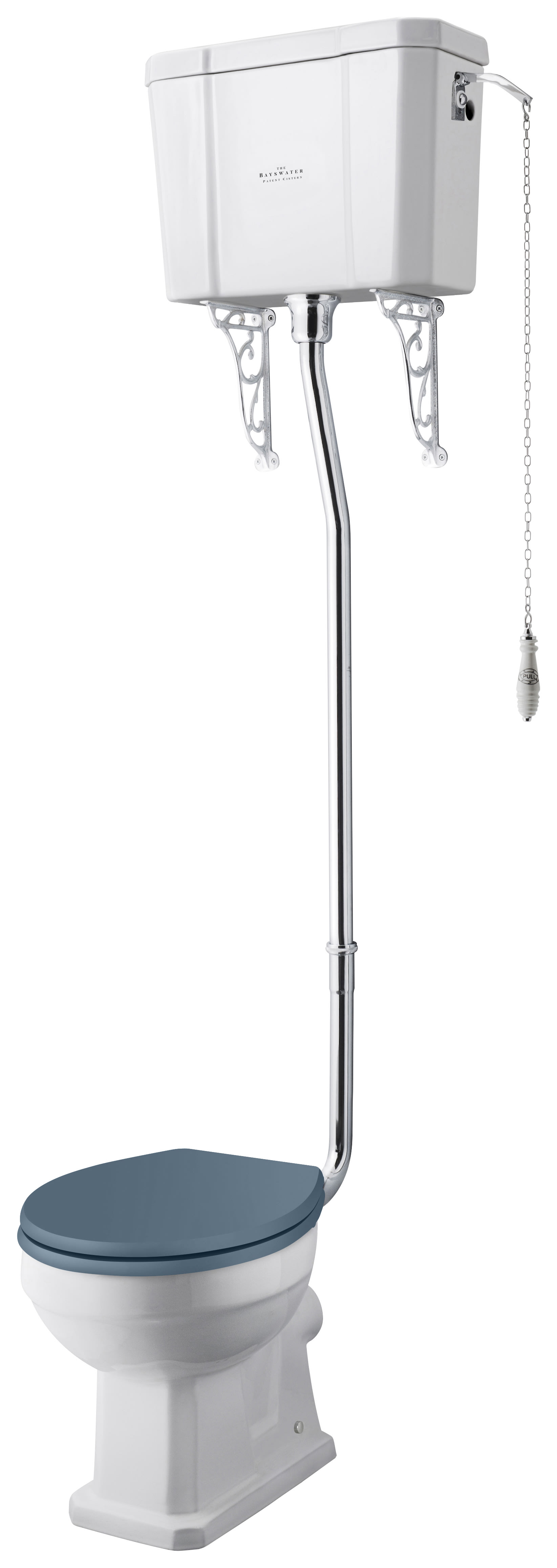 Bayswater Fitzroy Traditional High Level Toilet Pan, Cistern & Stiffkey Blue Soft Close Seat