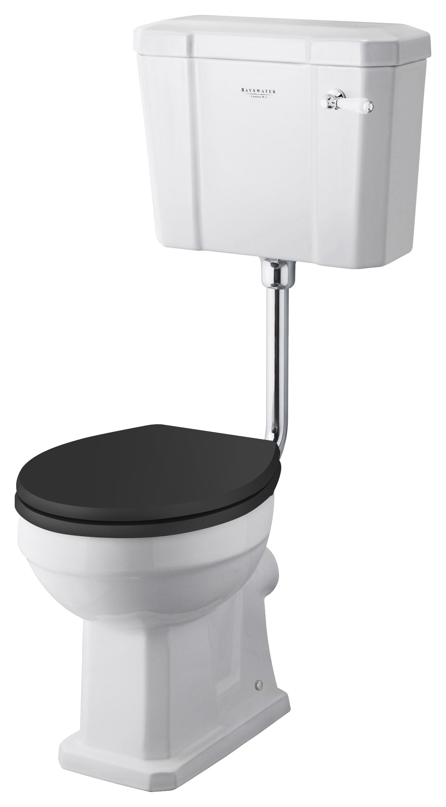 Bayswater Fitzroy Traditional Low Level Comfort Height Toilet Pan, Cistern & Black Soft Close Seat