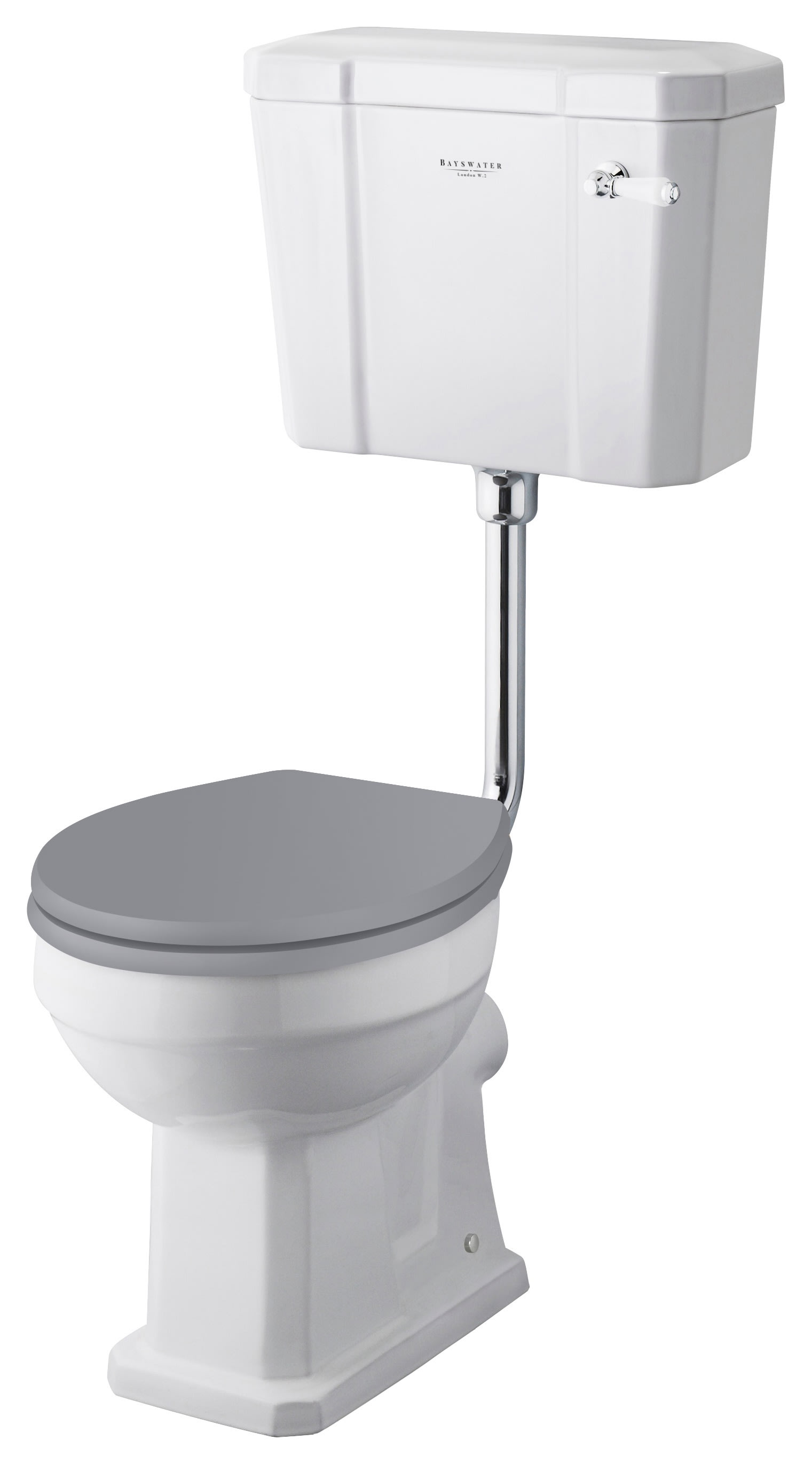 Bayswater Fitzroy Traditional Low Level Comfort Height Toilet Pan, Cistern & Plummett Grey Soft Close Seat