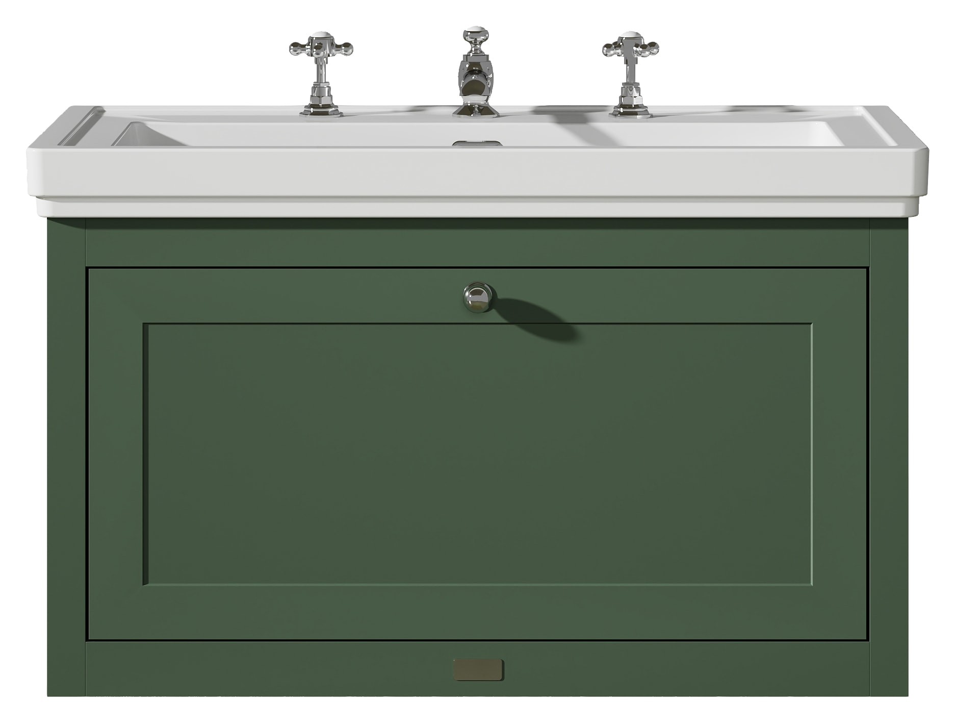 Bayswater Hartleigh Hunter Green Traditional Wall Hung Vanity Unit & 3 Tap Hole Traditional Recessed Basin - 800mm