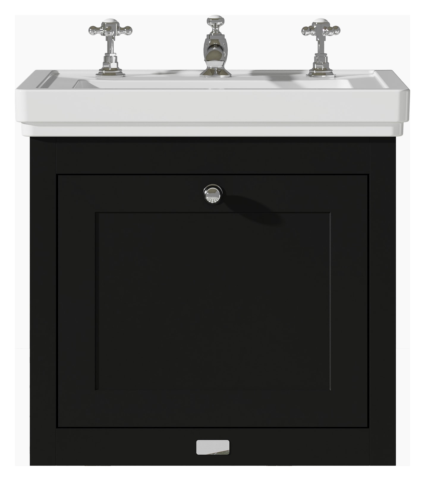 Bayswater Hartleigh Matt Black Traditional Wall HUng Vanity Unit & 3 Tap Hole White Recessed Basin - 500mm