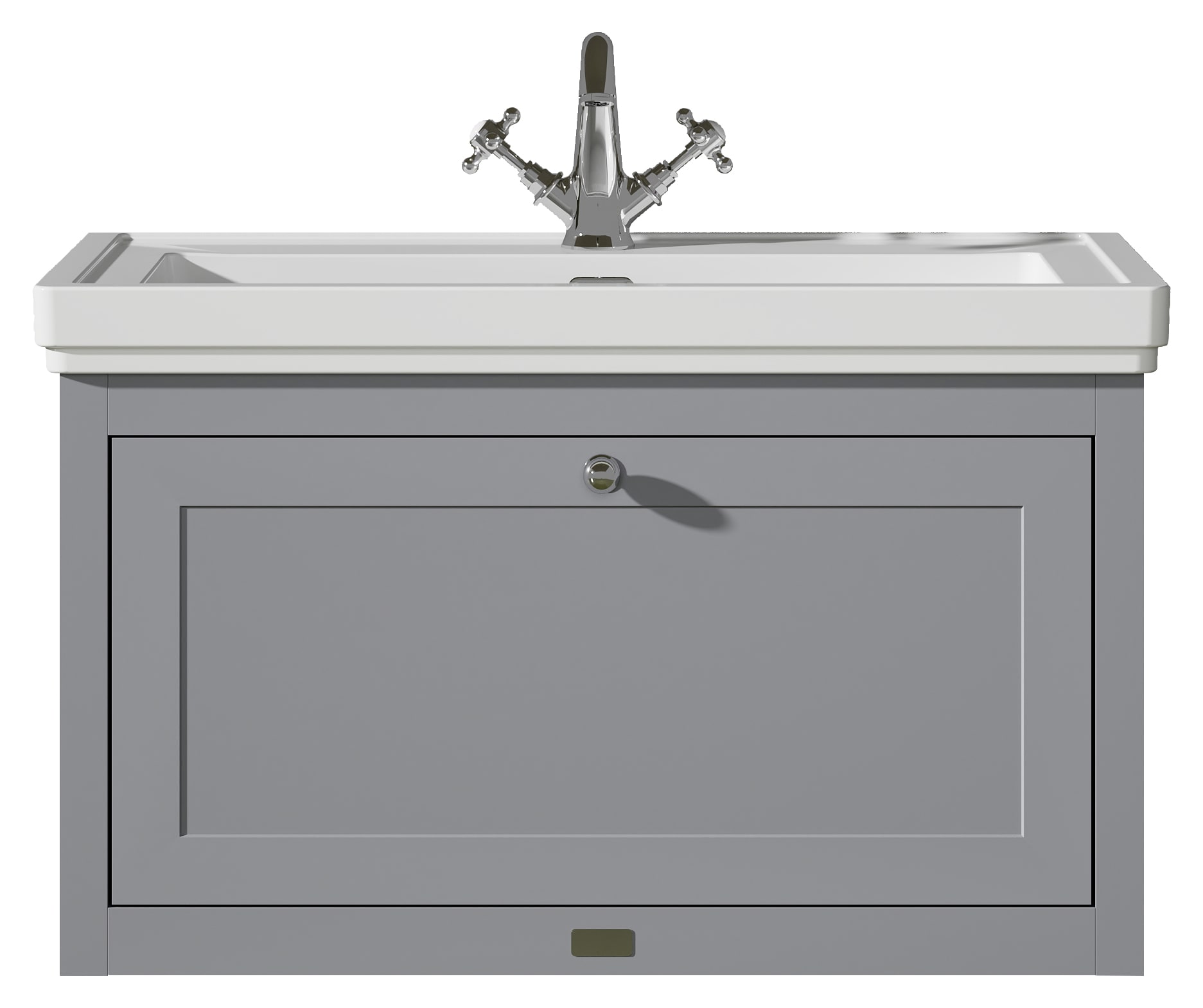 Bayswater Hartleigh Plummett Grey Traditional Wall Hung Vanity Unit & 1 Tap Hole Traditional Recessed Basin - 800mm