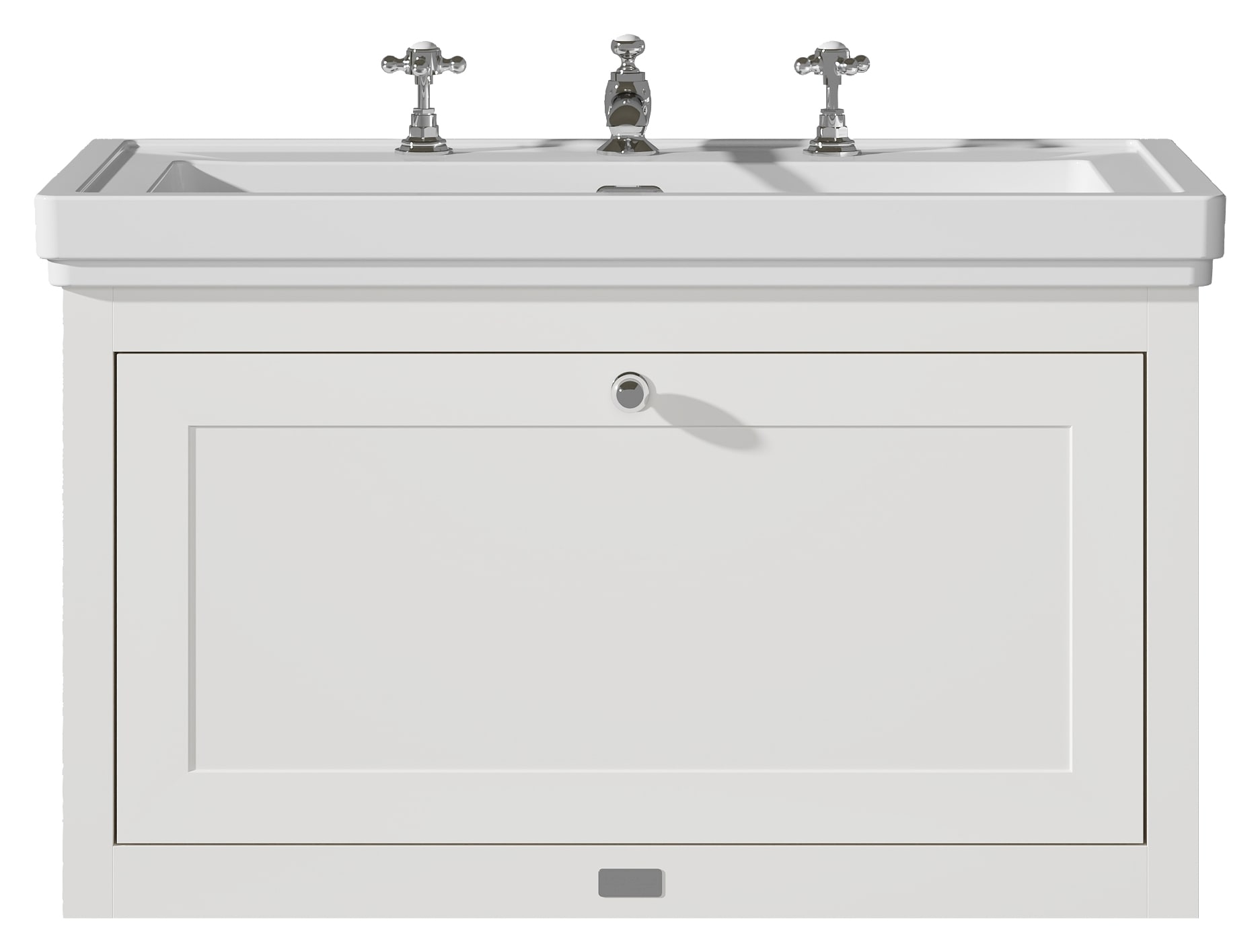 Bayswater Hartleigh Pointing White Traditional Wall Hung Vanity Unit & 3 Tap Hole Traditional Recessed Basin - 800mm