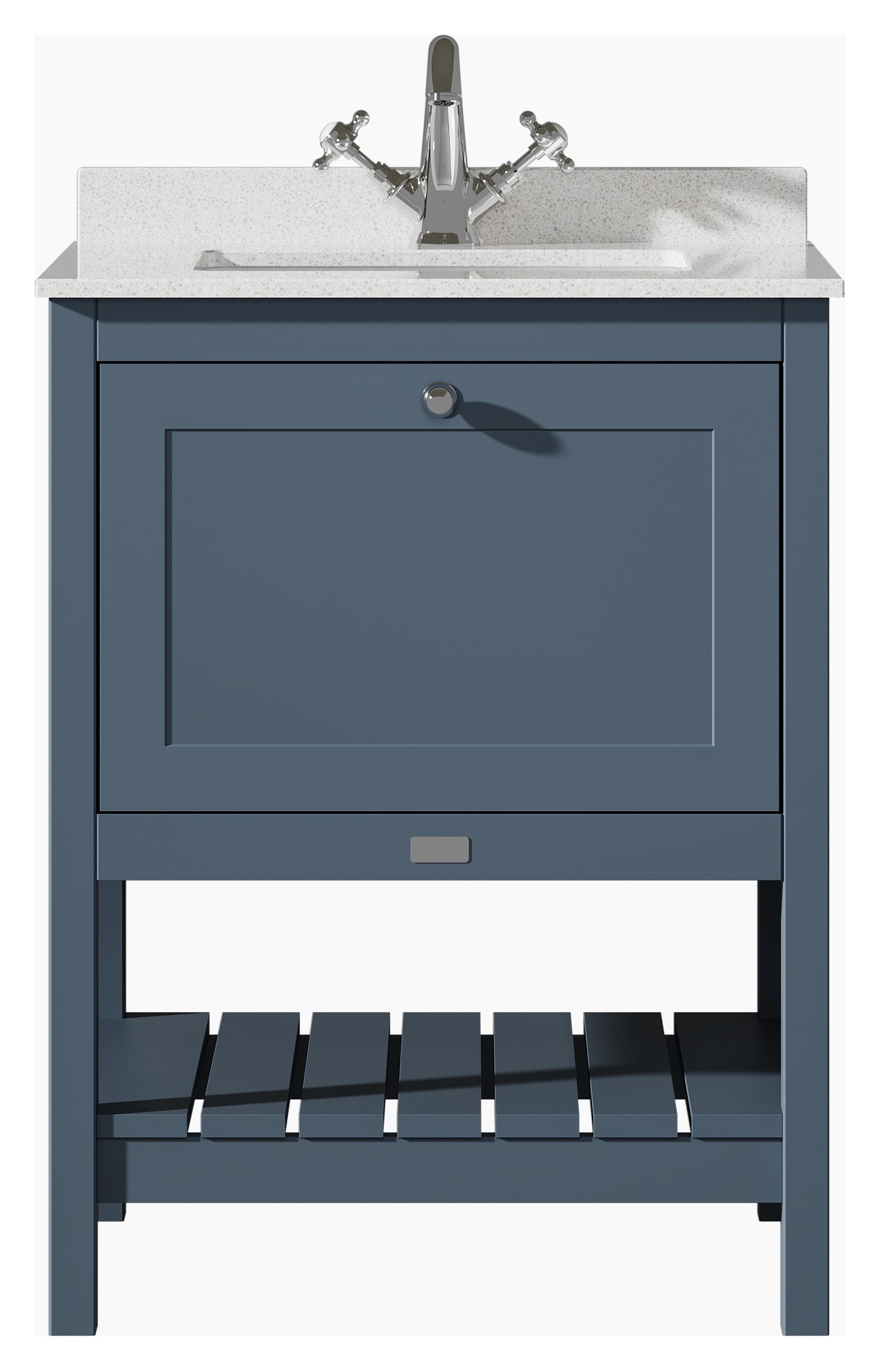 Bayswater Hartleigh Stiffkey Blue Traditional Freestanding Vanity Unit & 1 Tap Hole White Marble Top Basin - 600mm