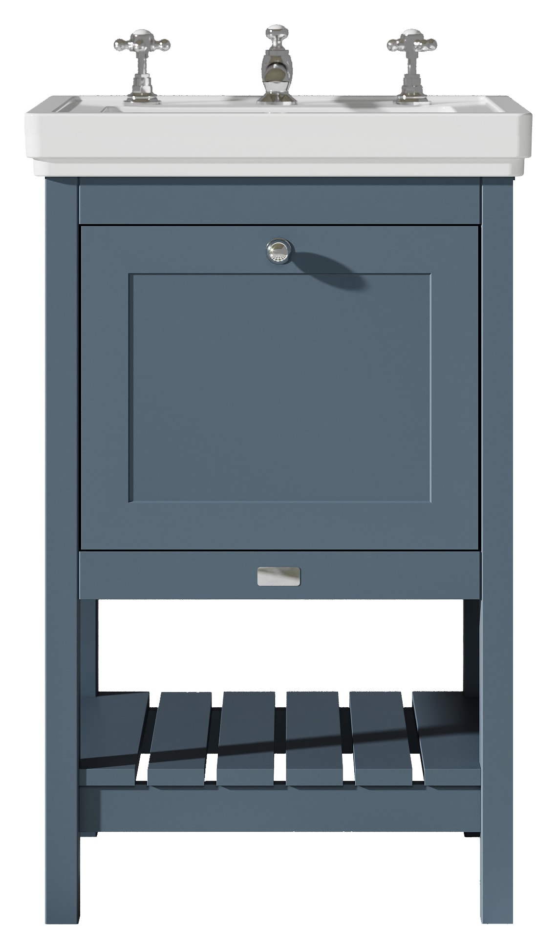 Bayswater Hartleigh Stiffkey Blue Traditional Freestanding Vanity Unit & 3 Tap Hole White Recessed Basin - 500mm