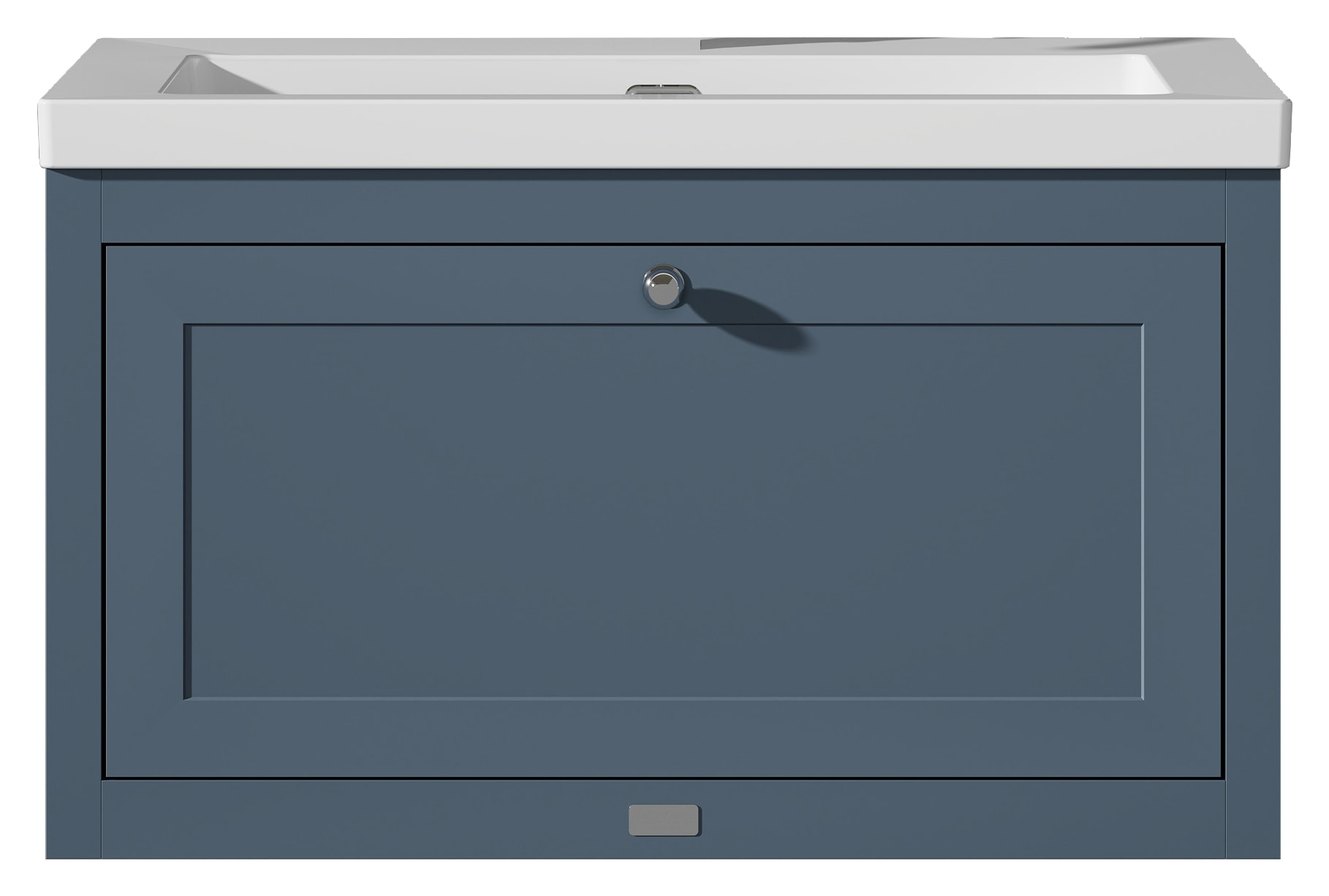 Bayswater Hartleigh Stiffkey Blue Traditional Wall Hung Vanity Unit & 1 Tap Hole Modern Recessed Basin - 800mm